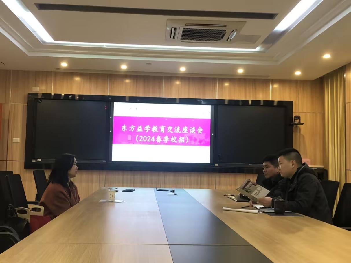 2024年3月5日,学院党委副书记及毕业班辅导员与东方益学教育(广西东方益学教育集团)开展座谈,双方就人才招聘需求与毕业生求职意向等方面进行深入交流,并在会后积极向毕业生推送招聘信息,鼓励学生就业。