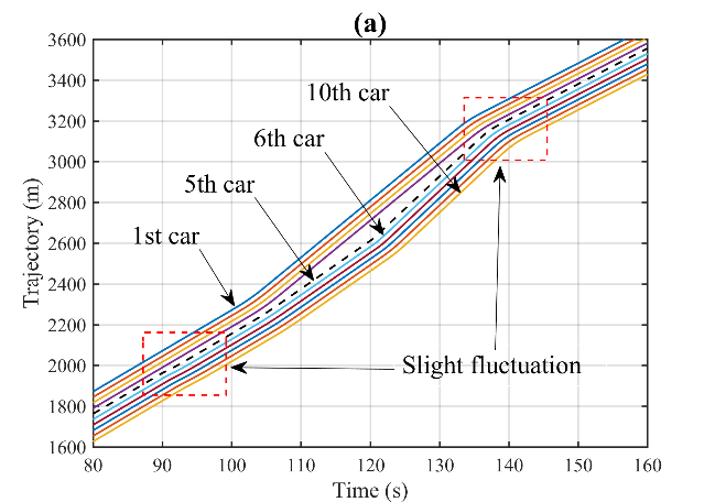 研究内容:在智能网联环境下,网联自动驾驶汽车(CAVs)通过网络进行V2X通信,共享交通信息,以提高道路的使用效率和安全性。然而,网联环境使CAVs容易受到网络攻击,如黑客攻击、恶意软件等,这些攻击将导致交通信息的误传,致使网联自动驾驶汽车(CAVs)控制决策失误,引发交通事故,甚至导致交通系统的瘫痪,对交通安全和效率构成了严重威胁。针对这种情况,课题组考虑了网络攻击对CAVs交通流的潜在影响,提出了抵御网络攻击的安全控制策略,建立了网络攻击触发下全局信息耦合映射跟驰模型(简称CAGI-CM模型)。通过控制论分析和数值解析方法确定了模型在无拥堵条件下的补偿系数值。通过数值模拟,分析了不同类型的网络攻击和安全控制信号对CAVs队列稳定性和安全性的影响。结果表明:网络攻击破坏CAVs传输的交通信息会导致不同的交通后果,如车辆异常加速、减速,车距拉大、过小,严重时出现碰撞,容易造成交通拥堵和瘫痪。而提出的安全控制信号策略极大地减轻了各种类型网络攻击对CAVs的安全威胁,既可以缓解交通拥堵,又能保证CAVs队列在网络攻击状态下的运行安全与顺畅。下面是部分模拟结果: