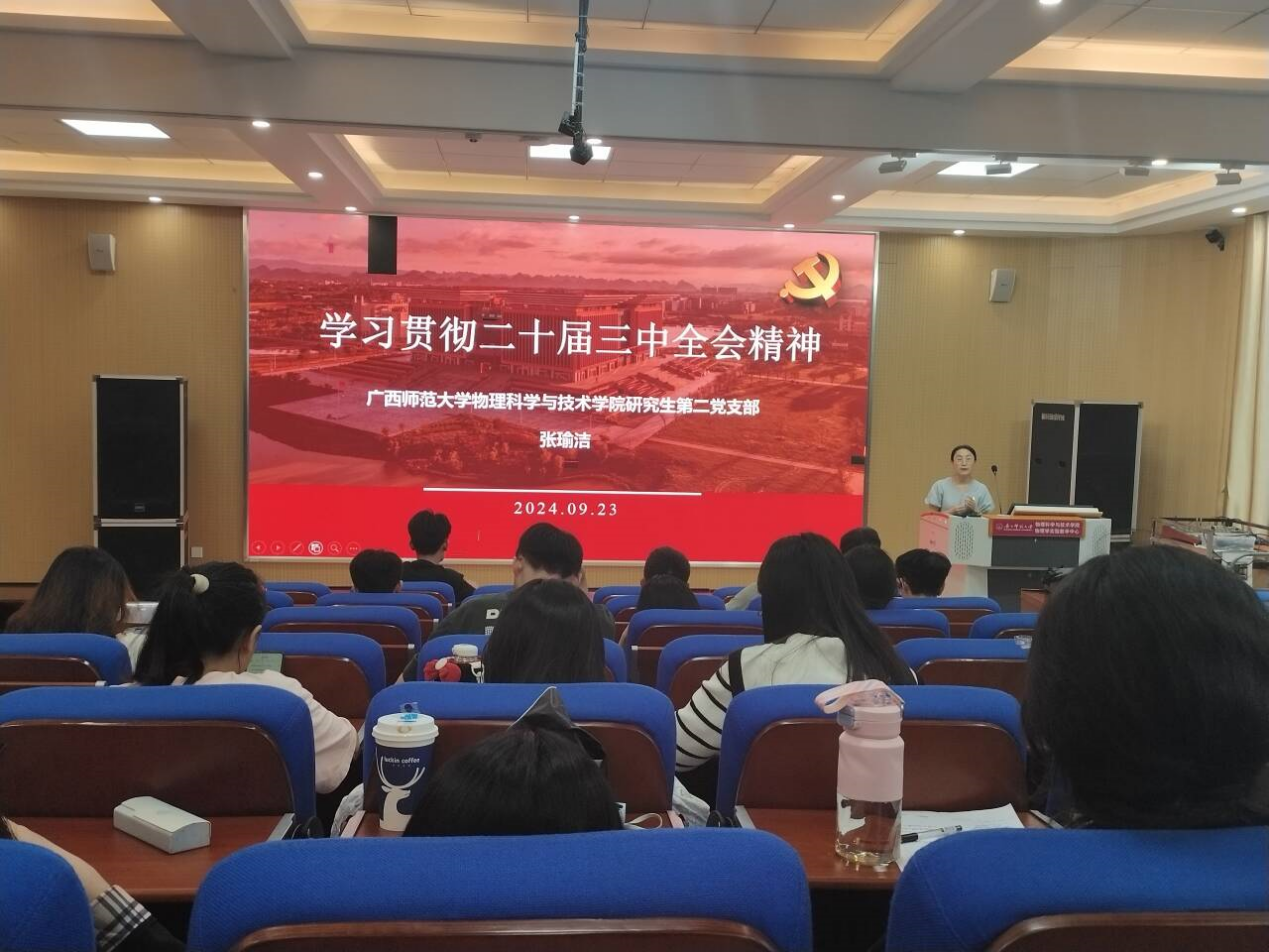 2024年9月23日,胜游体育(SYsports)官方网站入口与技术学院研究生第二党支部在物理实验楼410教室开展“学习贯彻党的二十届三中全会精神”主题党日活动,全体党员参加会议。