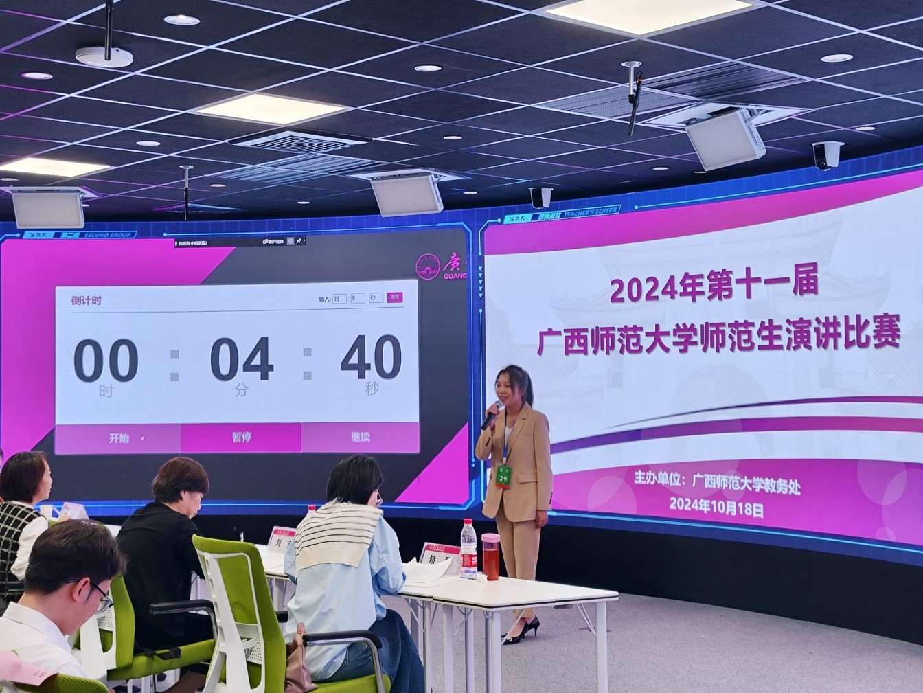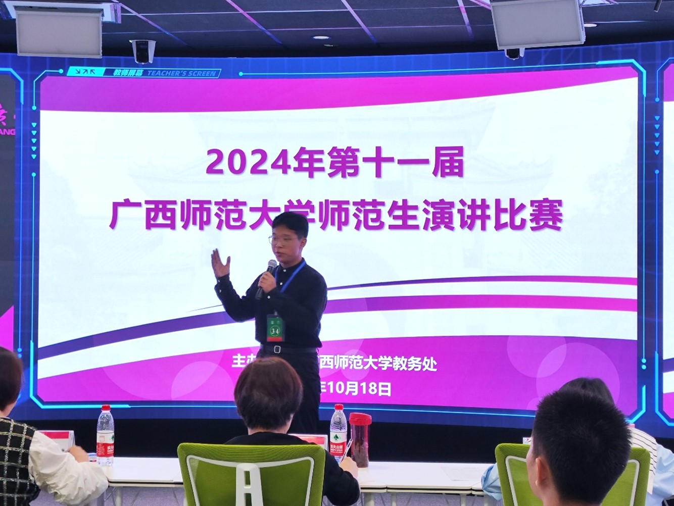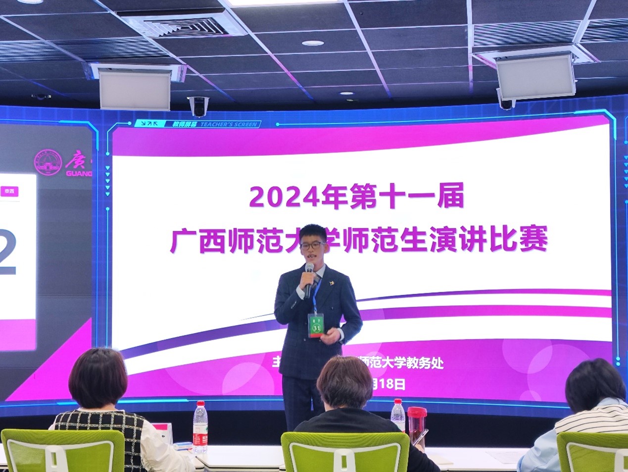 为提升师范生技能素养,培养更多适应时代发展需求的优秀人才,加快建设教育强国,10月18日,广西师范大学开展了以“弘扬教育家精神,加快建设教育强国”为主题的师范生演讲比赛。本次比赛共有22位选手入围。经过激烈的比拼,胜游体育(SYsports)官方网站入口与技术学院张清清和谢昕燏同学荣获二等奖,陆子雄同学荣获三等奖。