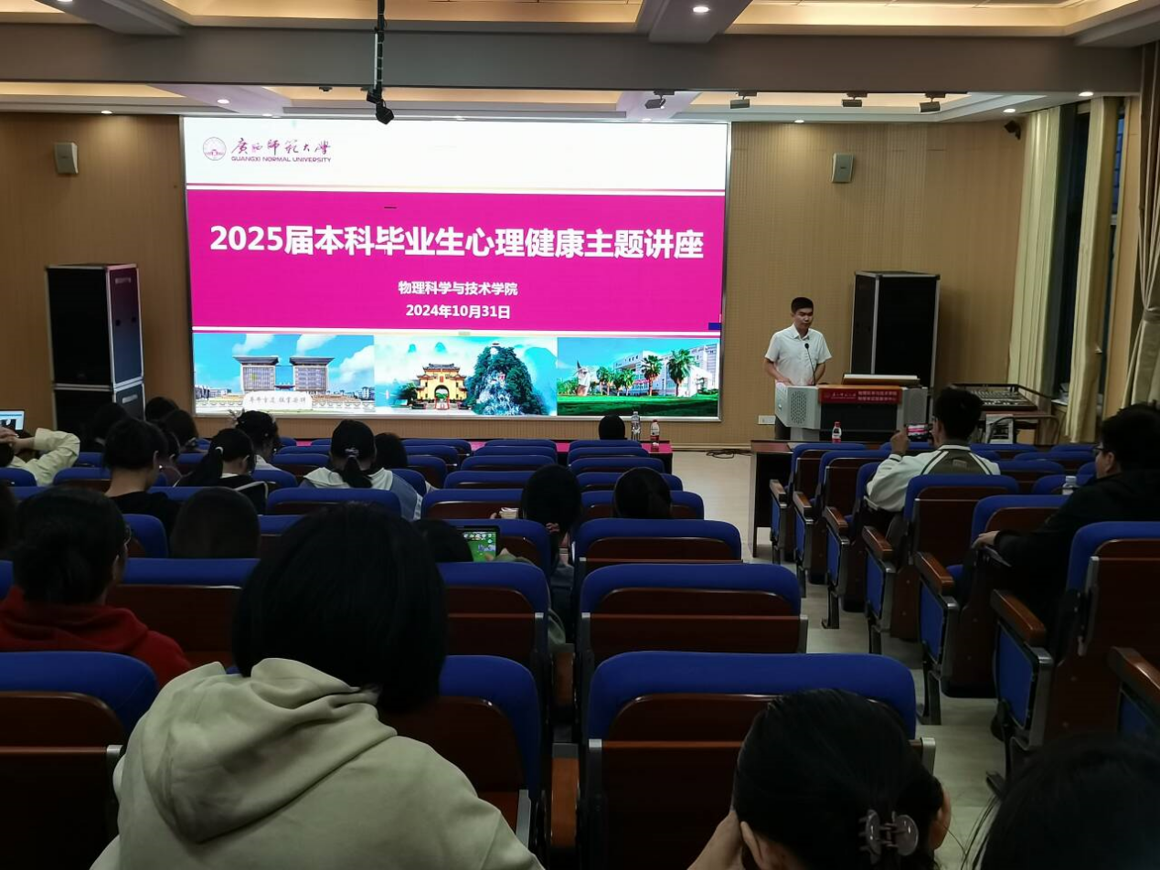 为帮助毕业生调节心理压力与情绪,宣传普及心理健康知识,助力学生健康成长,10月31日,胜游体育(SYsports)官方网站入口与技术学院于实验楼阶梯教室举办2025届本科毕业生心理健康主题讲座,本次讲座由心理咨询中心欧阳丹副教授主讲,2025届本科毕业生参加。