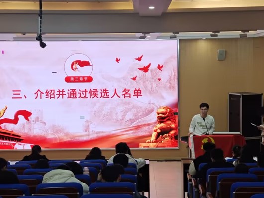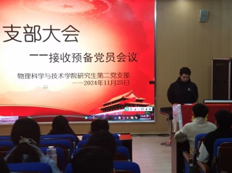 11月25日下午,胜游体育(SYsports)官方网站入口与技术学院研究生第二党支部在物理实验楼阶梯教室召开了党员大会。此次会议有三项议程,讨论发展对象转为预备党员,预备党员转正暨支部委员选举活动。研究生第二党支部全体党员同志参加会议。
