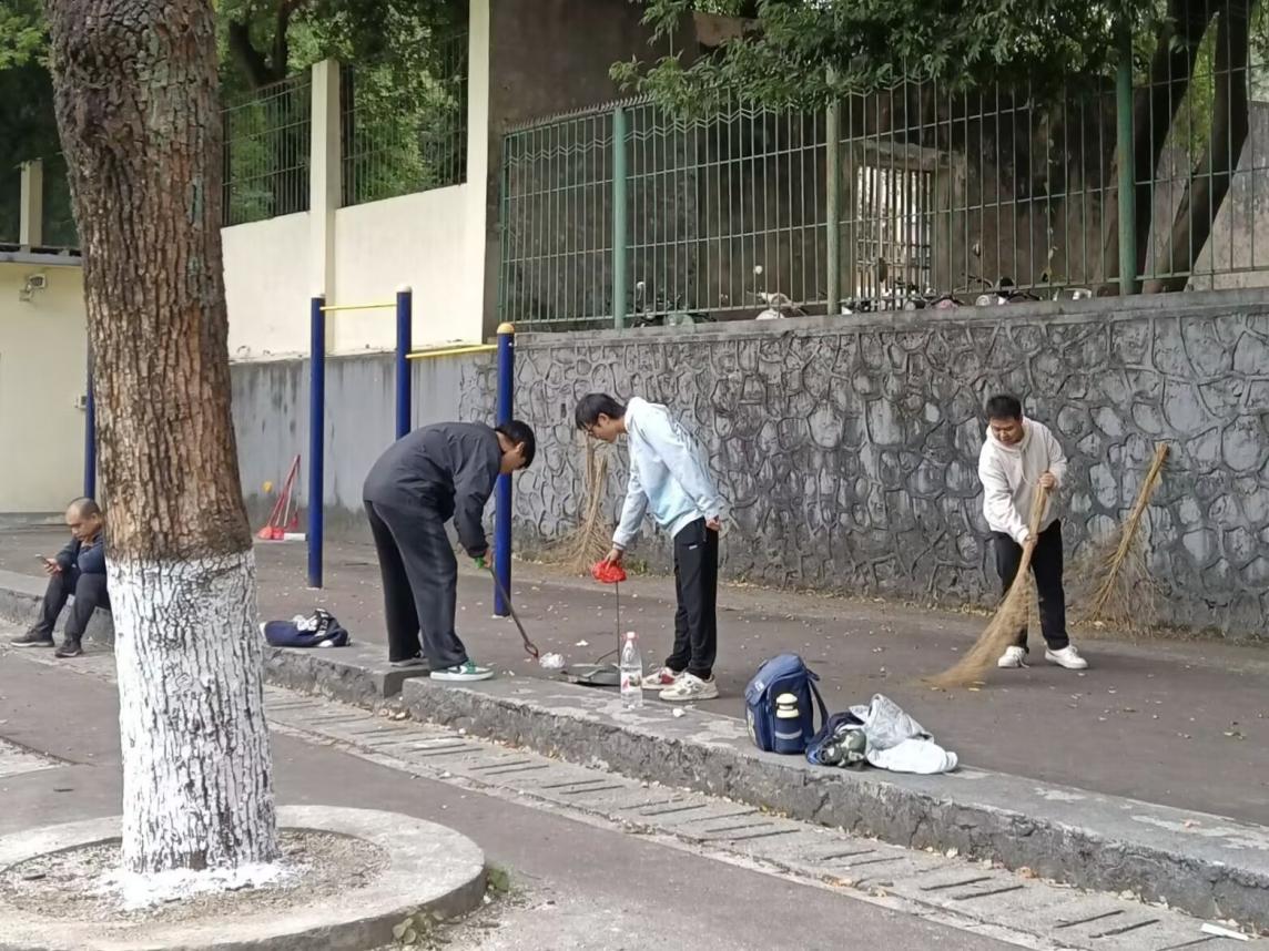 活动伊始,志愿者们在育才校区理科楼集中,由活动负责人强调活动安全注意事项并完成任务分配。活动过程中,志愿者们分组分区域开展清扫工作,工作内容包括清扫落叶和纸屑、捡拾绿化带中的废弃物、捡拾烟蒂和塑料瓶等垃圾。经过志愿者们的辛勤劳动,有效提升了校园环境的整体形象。