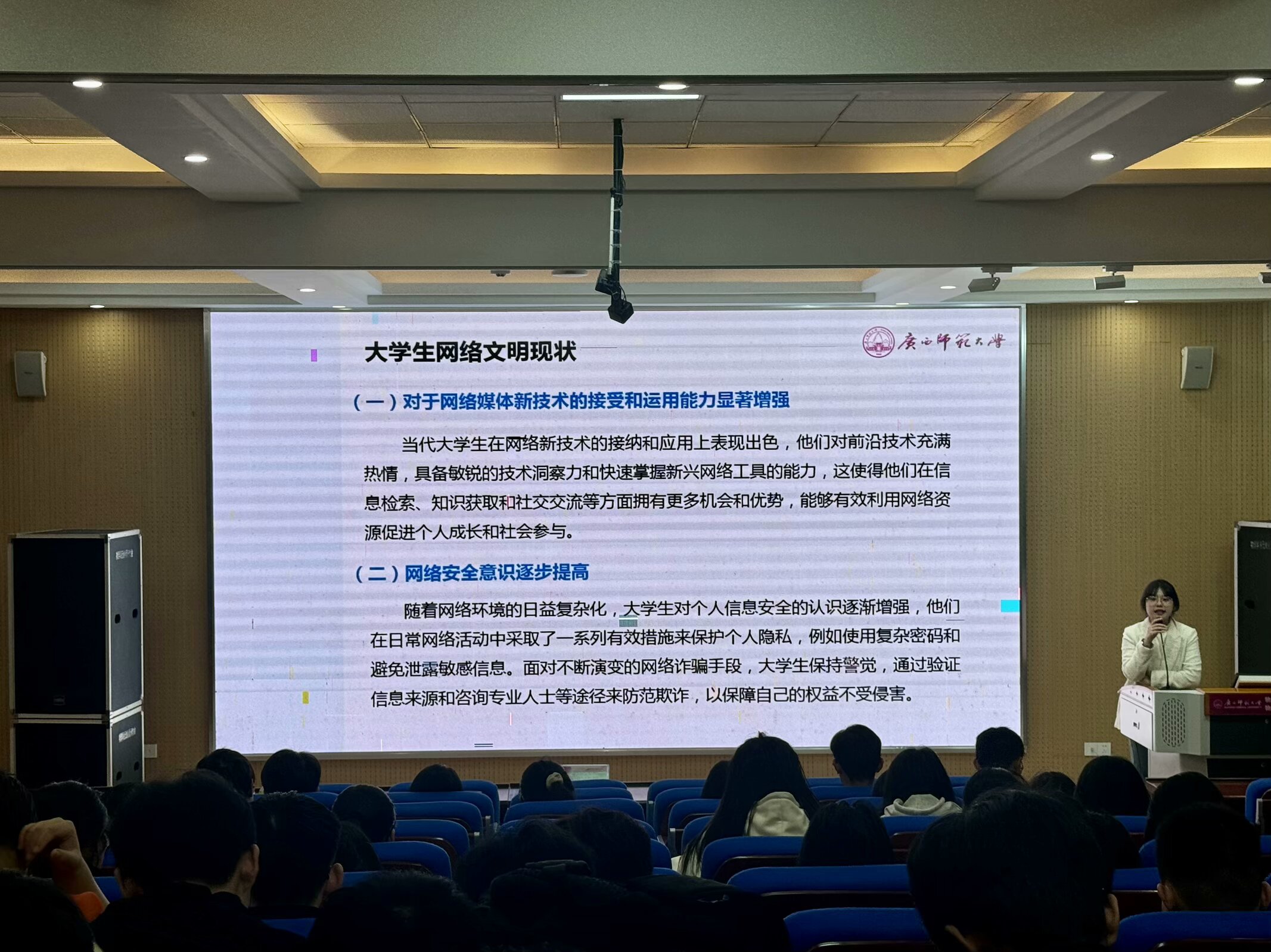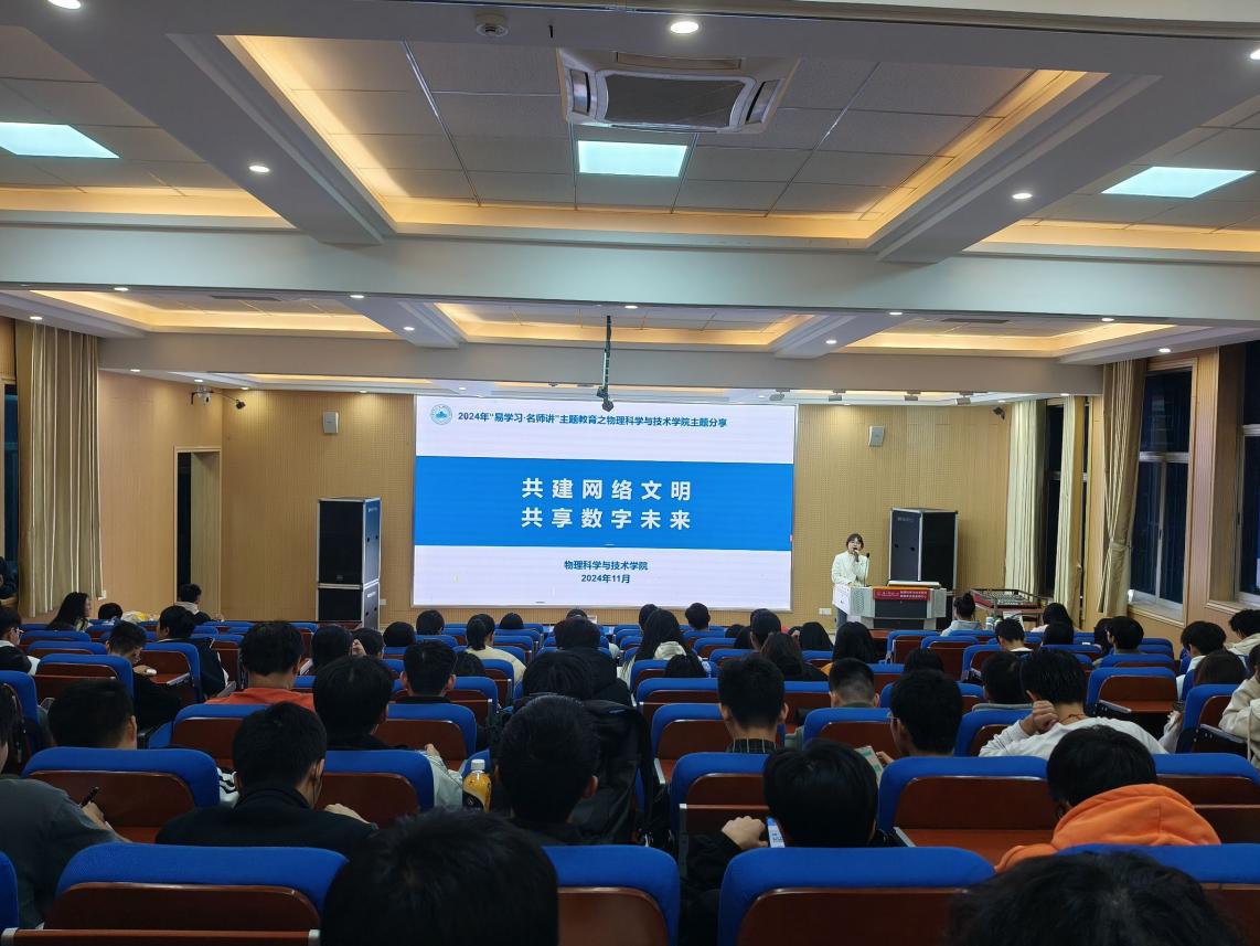 为了营造风清气正的网络环境,增强大学生知网、懂网、用网能力,2024年11月29日下午,胜游体育(SYsports)官方网站入口与技术学院易班工作站于物理实验楼阶梯教室教室举办主题为“共建网络文明,共享网络未来”的主题讲座,本次会议由学院研究生辅导员邓惠月老师主讲。
