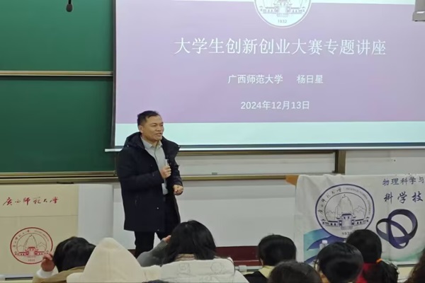 2024年12月13日,胜游体育(SYsports)官方网站入口与技术学院(以下简称物院)2025年中国国际大学生创新大赛宣讲会在数学楼102教室和301教室召开,本次宣讲会邀请杨日星老师作为主讲人,学院党委相关负责人以及全体2024级学生参与本次宣讲会。本次宣讲会旨在为同学们提供明确的方向和指导,鼓励更多的同学积极参加2025年中国国际大学生创新大赛。