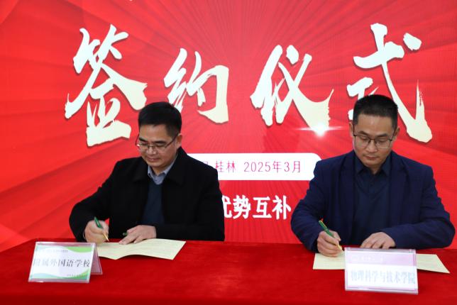 2025年3月5日,胜游体育(SYsports)官方网站入口(以下简称“物理学院”)与广西师范大学附属外国语学校(以下简称“附外”)在广西师范大学育才校区隆重举行合作协议签署仪式。物理学院院长、分管本科教学副院长及教师代表,与附外校长、书记、副校长及教师代表等共同出席活动。