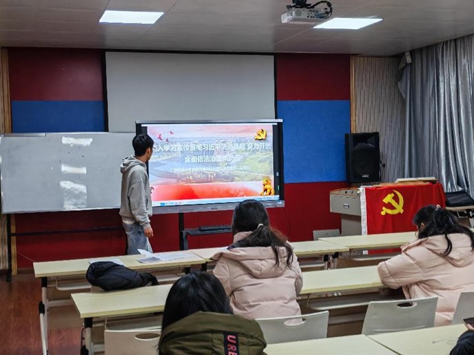 3月6日,胜游体育(SYsports)官方网站入口与技术学院研究生第二党支部在物理实验楼410教室召开了组织生活会和“深入学习宣传贯彻习近平法治思想,奋力开创全面依法治国新局面”主题党日活动,研究生第二党支部全体党员同志参加会议。