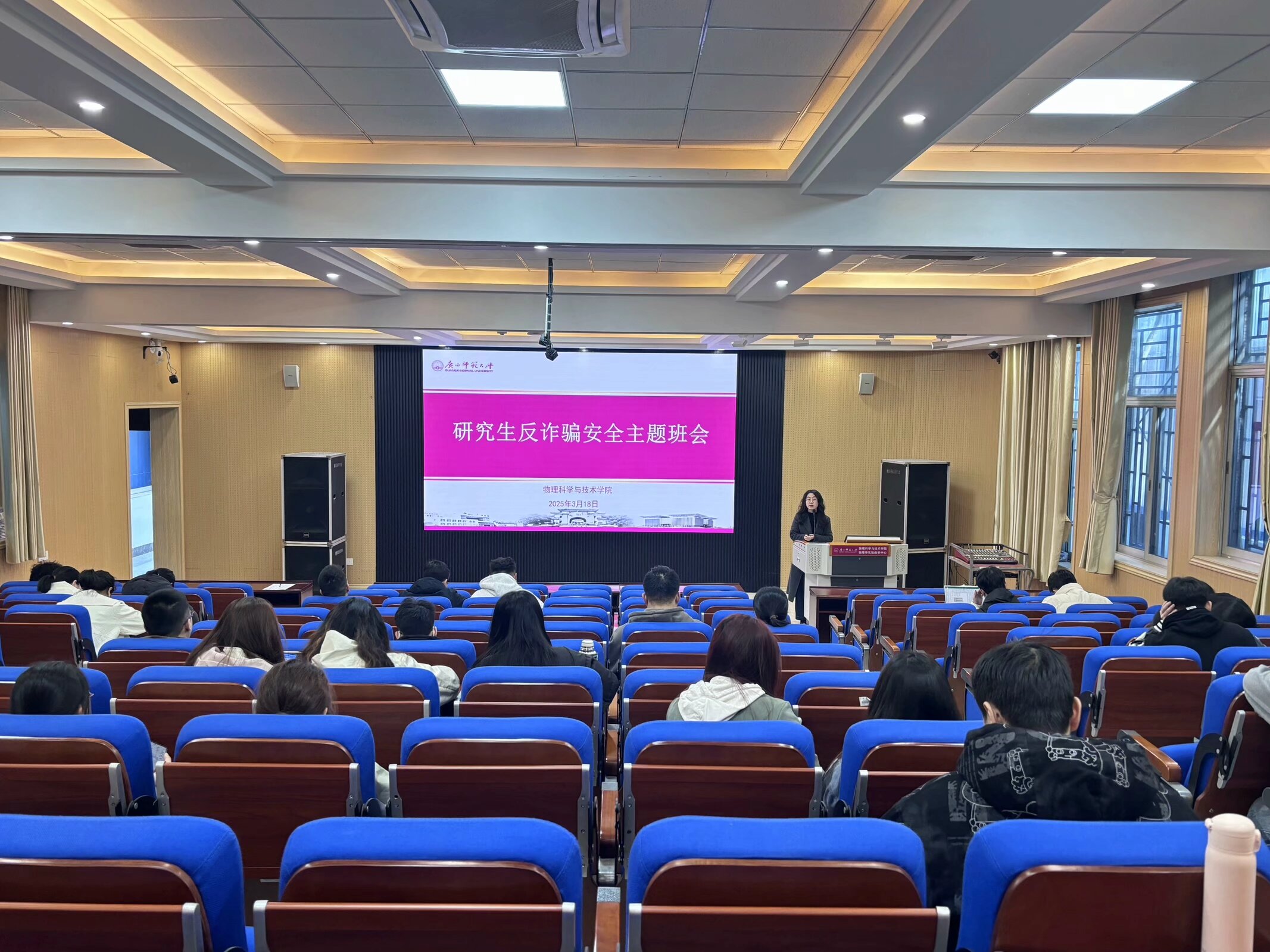 为切实增强研究生反诈意识和能力,2025年3月18日上午,胜游体育(SYsports)官方网站入口与技术学院于学院实验楼一楼阶梯教室开展研究生防诈骗主题班会,全体研究生共同参加。