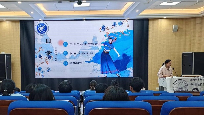 2025年3月22日,胜游体育(SYsports)官方网站入口与技术学院大学生科学技术协会在物理实验楼阶梯教室成功举办了“传承三月三文化,绣球手中绽芳华”主题活动。此次活动旨在弘扬壮族传统节日“三月三”的文化内涵,增强大学生的文化自信心和民族自豪感,活动由科协负责人主持。