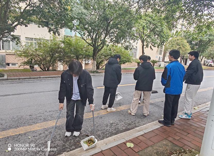 当天下午,60余名志愿者分组前往师大社区指定区域,手持清洁工具,对道路、绿化带等公共区域进行细致清扫。同学们分工协作,默契配合,经过一小时的努力,社区环境焕然一新。活动结束后,志愿者们将垃圾分类打包并集中清运,以实际行动践行环保理念。