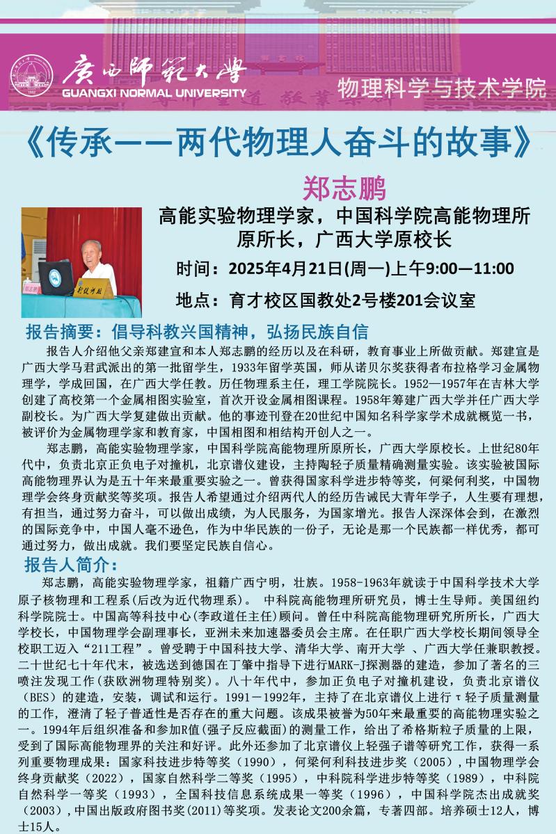 【学术预告】郑志鹏:传承——两代物理人奋斗的故事