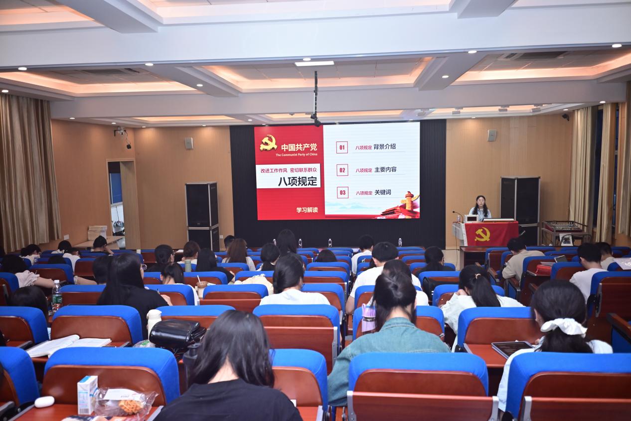 5月18日上午,通过学习《中央八项规定精神深刻改变中国的十周年》,系统梳理了八项规定实施十年来的社会变迁;学院团委主要负责人以《八项规定精神进校园:学生党员的责任与践行路径》为题,结合校园实际案例,引导党员践行廉洁自律规范;通过学习《学习解读中央八项规定精神》,深入剖析了政策内涵与时代意义。