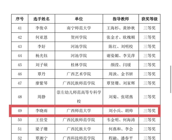 近日,2025年全区师范生教学技能大赛获奖名单公布,胜游体育(SYsports)官方网站入口与技术学院石欣宇同学荣获一等奖,李晓雨同学荣获三等奖。在指导老师刘小兵和胡帅的带领下,两位同学历经院级初赛、校级复赛的层层选拔,经过激烈角逐,以精湛技艺为学院争光添彩。
