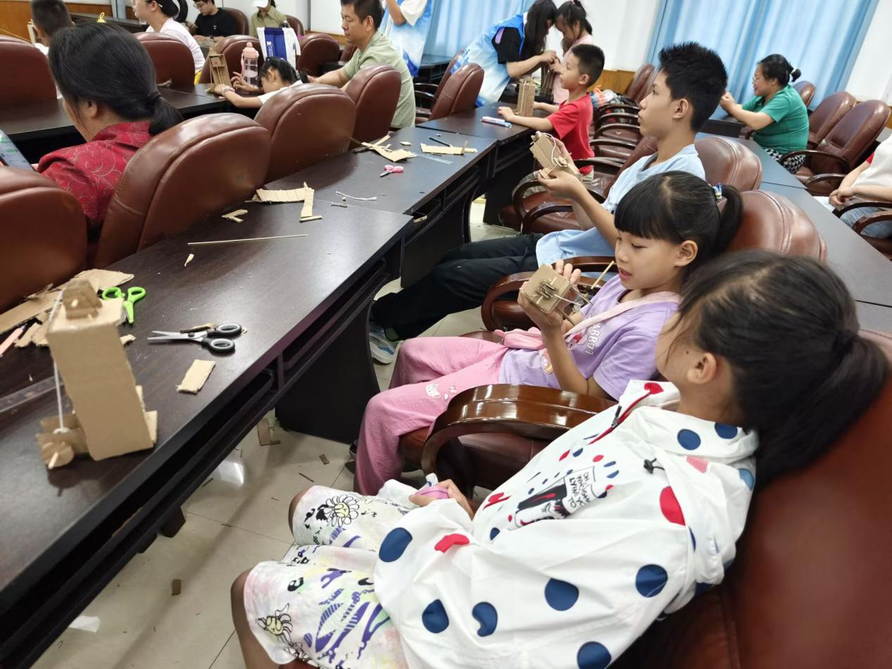 理论讲解结束后,最受期待的科学小制作环节拉开帷幕。在制作环节中,小朋友们与助教携手合作,共同投入到“升降小电梯”的制作中。大家对照制作步骤认真操作,遇到困难时,主讲老师和助教老师及时上前耐心指导。在家长与师生的共同努力下,一个个精巧的“升降小电梯”陆续诞生,孩子们看着自己亲手制作的作品,脸上洋溢着满满的成就感与喜悦。
