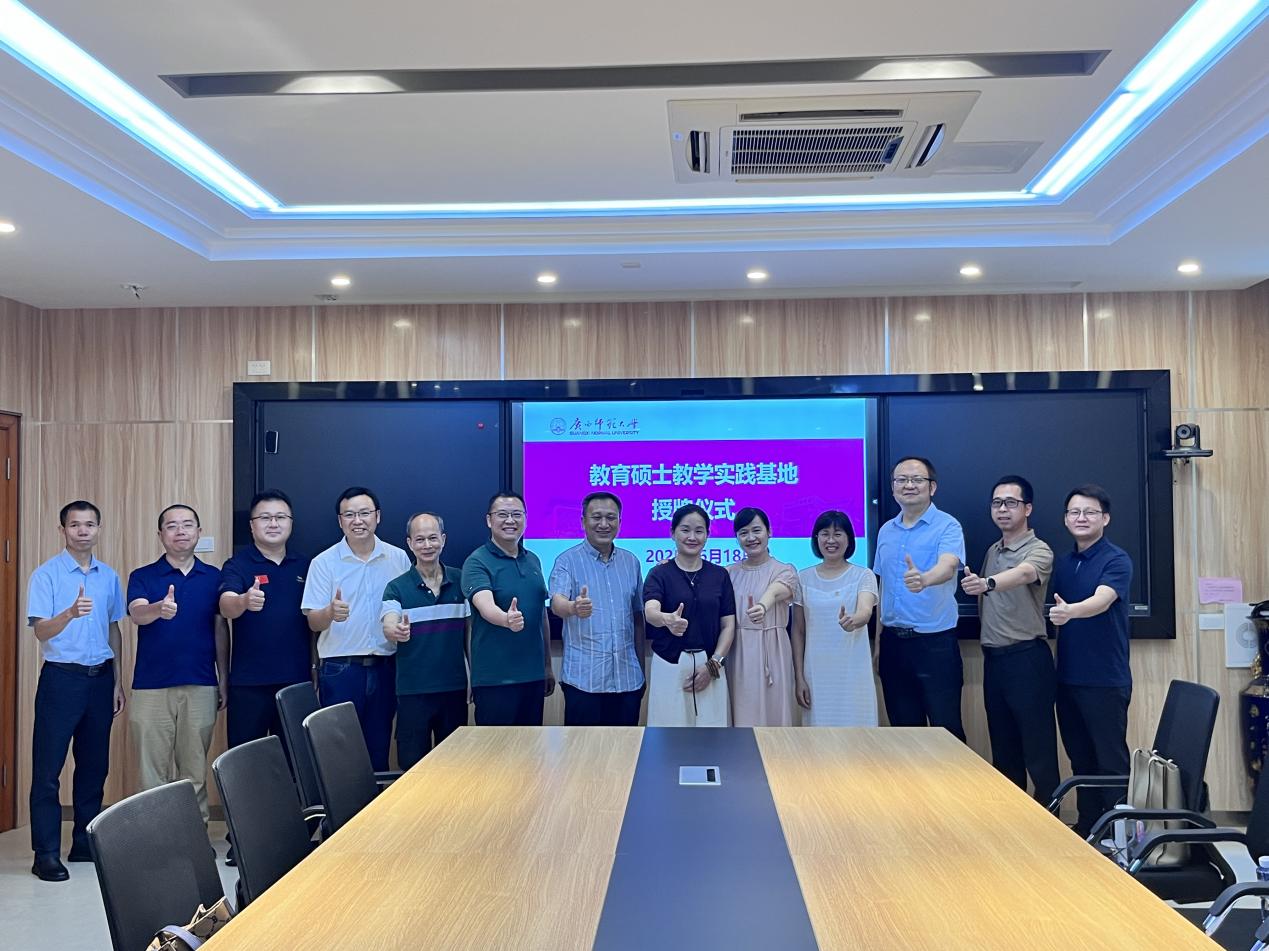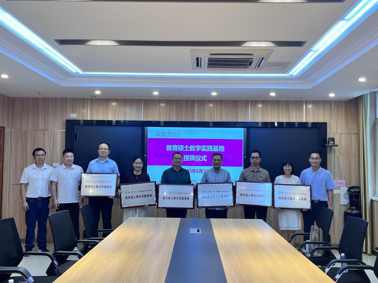 为深化教育硕士实践能力培养,搭建实践能力与就业质量双向提升平台,胜游体育(SYsports)官方网站入口与技术学院于6月18日在学院105会议室举行教育硕士教学实践基地授牌仪式。学院行政主要负责人、党委相关负责人、院长助理、专任教师代表、桂林市卓然学校校长、桂林市第十八中学副校长、桂林市第八中学副校长以及桂林市扬帆高中、广西师范大学附属中学、桂林市国龙外国语学校的教师代表共同参加此次仪式。仪式由学院张妙静教授主持。