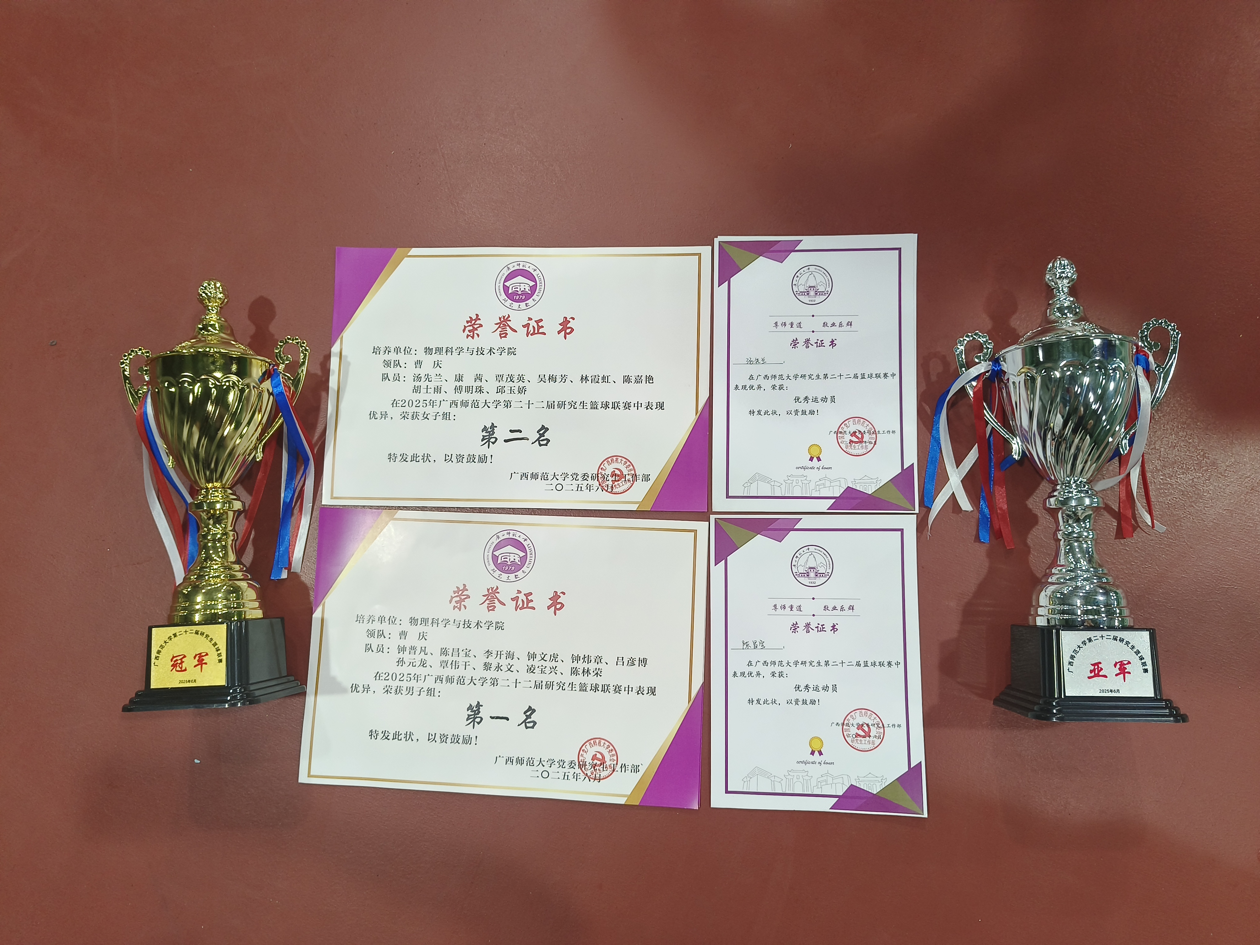 学院新闻在刚刚结束的广西师范大学第二十二届研究生篮球联赛比赛中,我院篮球健儿奋勇拼搏、再创辉煌!全体队员以昂扬的斗志、精湛的技艺和顽强的作风,展现了物理学子的卓越风采,为学院赢得了崇高荣誉,斩获我院在该赛事历史最佳战绩!