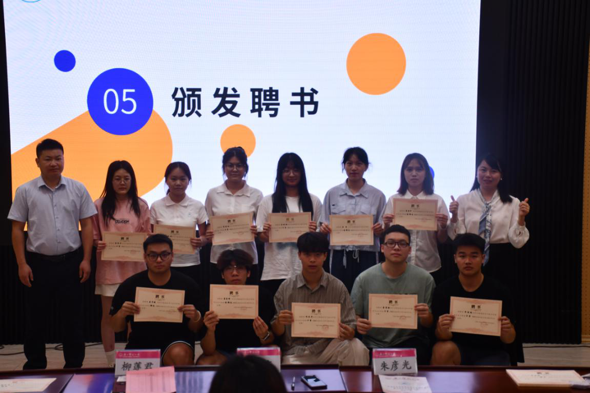 换届大会旨在及时有效地为学院学生干部队伍补充新生力量,总结和回顾过去我院团学工作上的进步和不足,对新学期的工作进行了重点部署和未来规划。大会伊始,由纪检部汇报出勤情况,再到往届院干做年度工作报告、颁发聘书、新一届主席团做未来规划等各项工作。