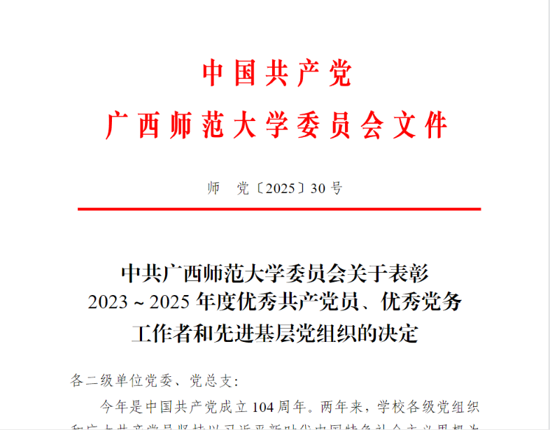 本次表彰,学院廖广睿、朱长明、方子欣3位师生同志荣获“优秀共产党员”称号,曹庆、张瑜洁2位同志获评“优秀党务工作者”,研究生第二党支部、本科生第一党支部荣获“先进基层党组织”称号。获奖范围覆盖优秀党员、优秀党务工作者和先进基层党组织全部类别,充分展现学院党建工作全面发展的良好态势。