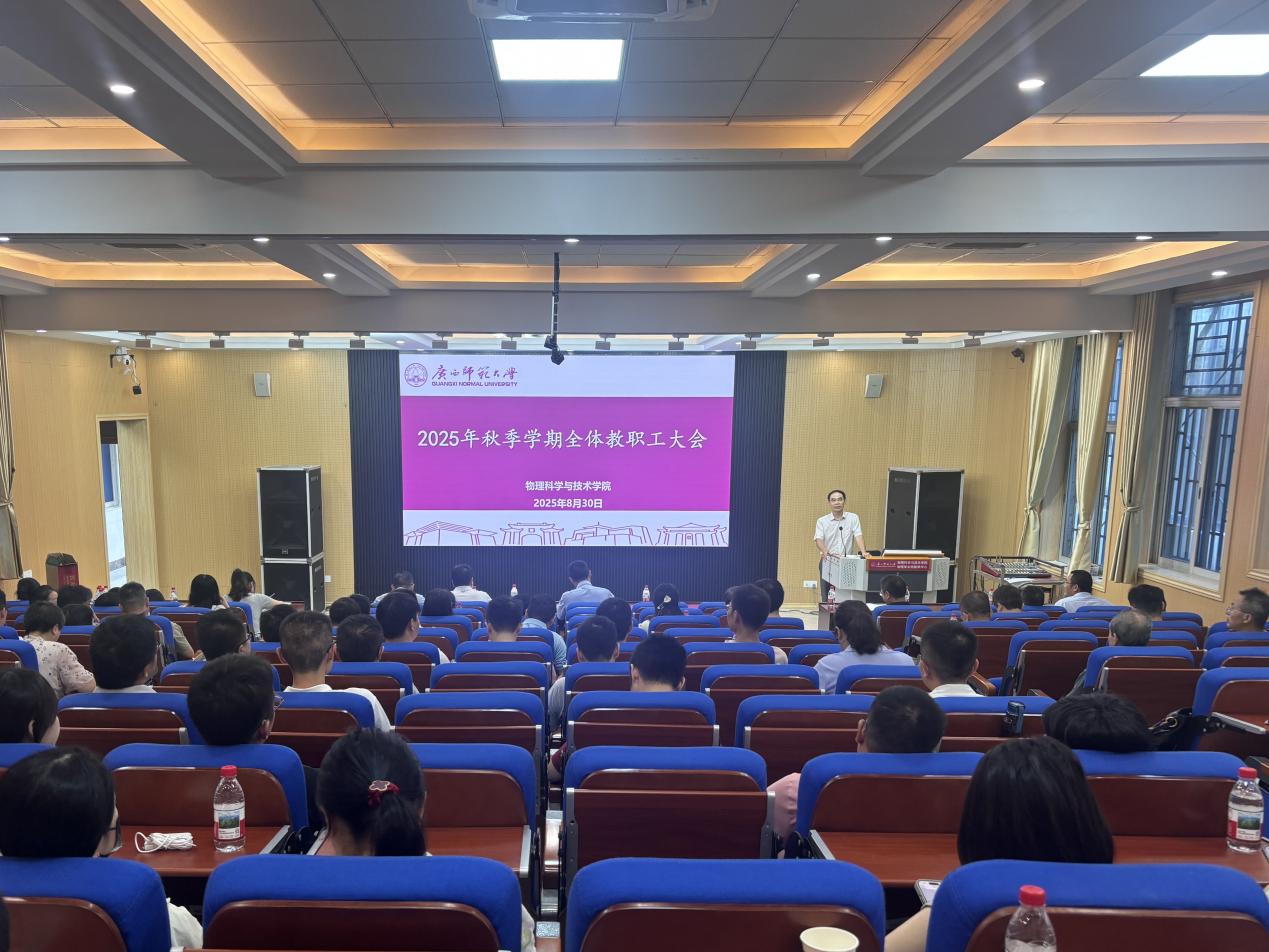 8月30日上午,胜游体育(SYsports)官方网站入口与技术学院在学院实验楼阶梯教室召开2025年秋季学期开学全体教职工大会,部署新学期重点工作,统一思想,凝聚共识。会议由学院党委主要负责人主持。