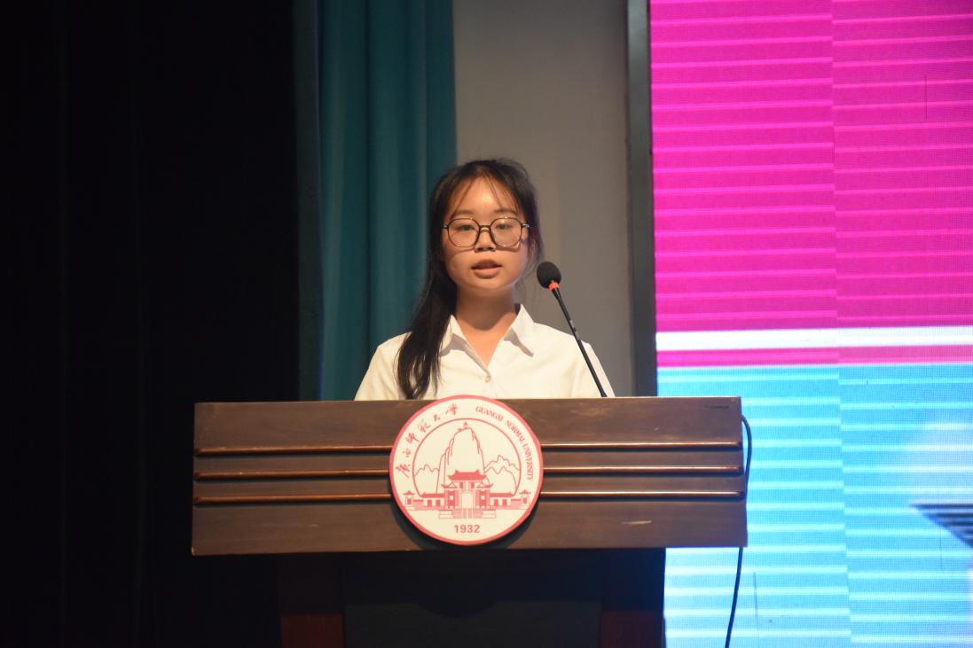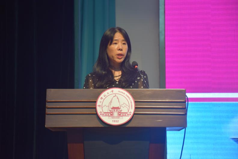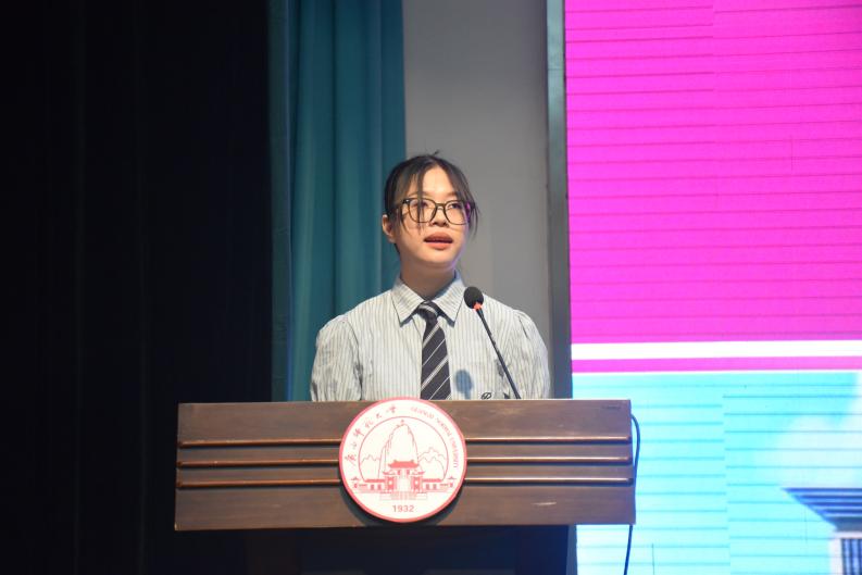随后,教师代表梁伟红教授上台发言。她结合自己多年的教学与科研经历,鼓励同学们保持好奇之心,敢于提问,乐于探索,锤炼意志,不畏挫折,在一次次克服困难的过程中体验成长的喜悦,收获充实而难忘的求学时光。