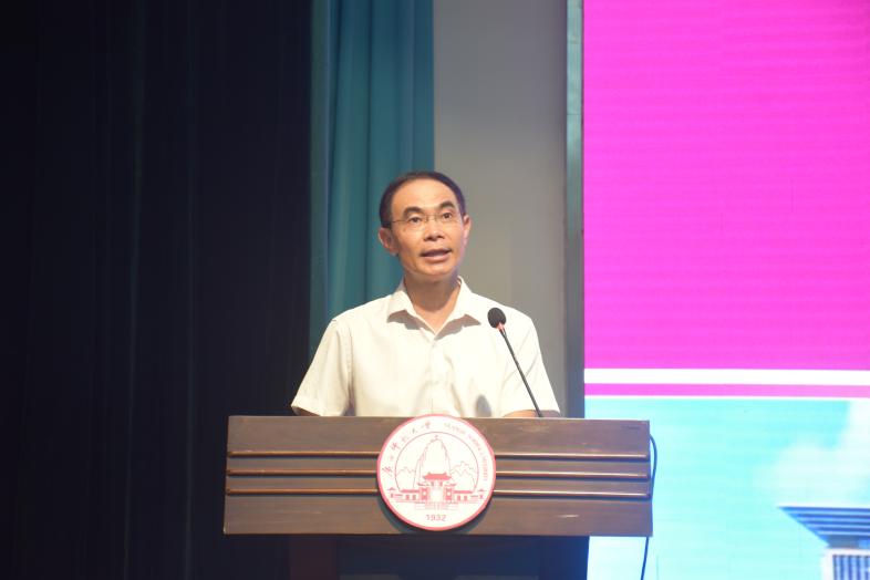 会议在激扬的国歌中拉开序幕,学院党委主要负责人代表学院致欢迎辞。他首先向加入学院的全体新生表示最热烈的祝贺和最诚挚的欢迎,介绍了学院历史沿革、学科建设、师资队伍、科研成果等基本情况,并对新生提出了四点期望和要求:一要“立鸿鹄志”,胸怀家国,志存高远,筑牢理想信念的基石;二要“练真本领”,主动适应大学学习节奏,夯实数理基础,锤炼扎实深厚的学业根基;三要“拓新视野”,敢为人先,增强探索未知的学术勇气;四要“塑健全格”,在学业科研之余积极投身文体活动与社会实践,实现全面成长。