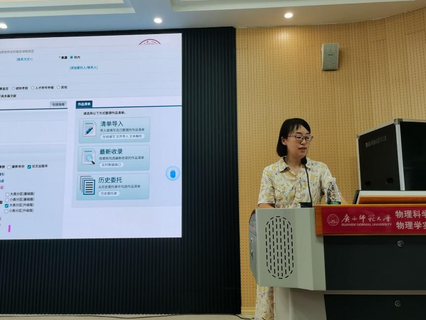 为帮助2025级研究生了解图书馆的各项资源和服务,进一步提高研究生的信息素养水平。9月3日,物理学院在阶梯教室开展图书馆入馆教育活动。本次讲座邀请到图书馆郑丽霞作为主讲老师,她主要从图书馆概况、国内常用数据库、常用外文数据库、校外资源获取四个方面进行了详细地讲解。