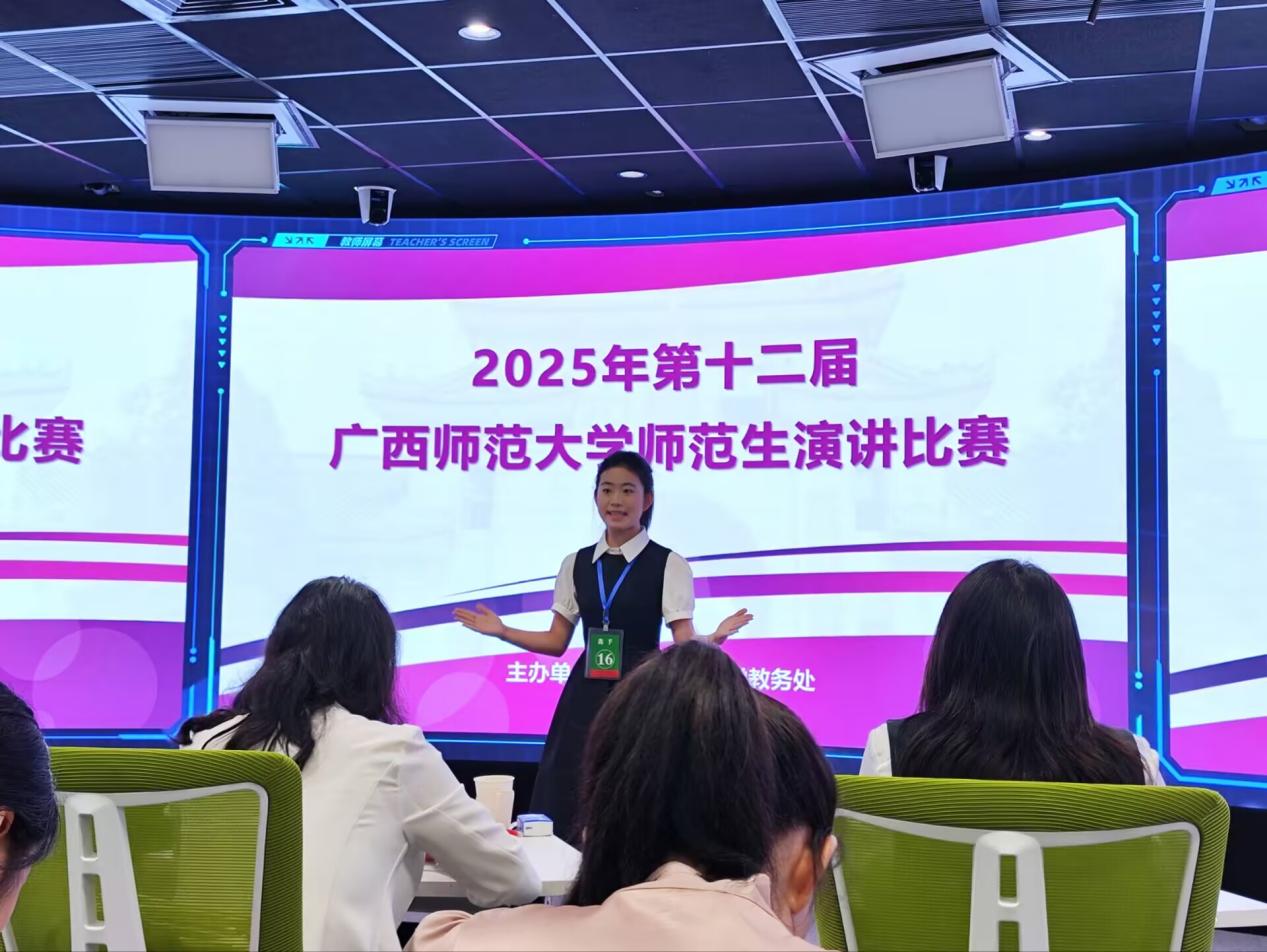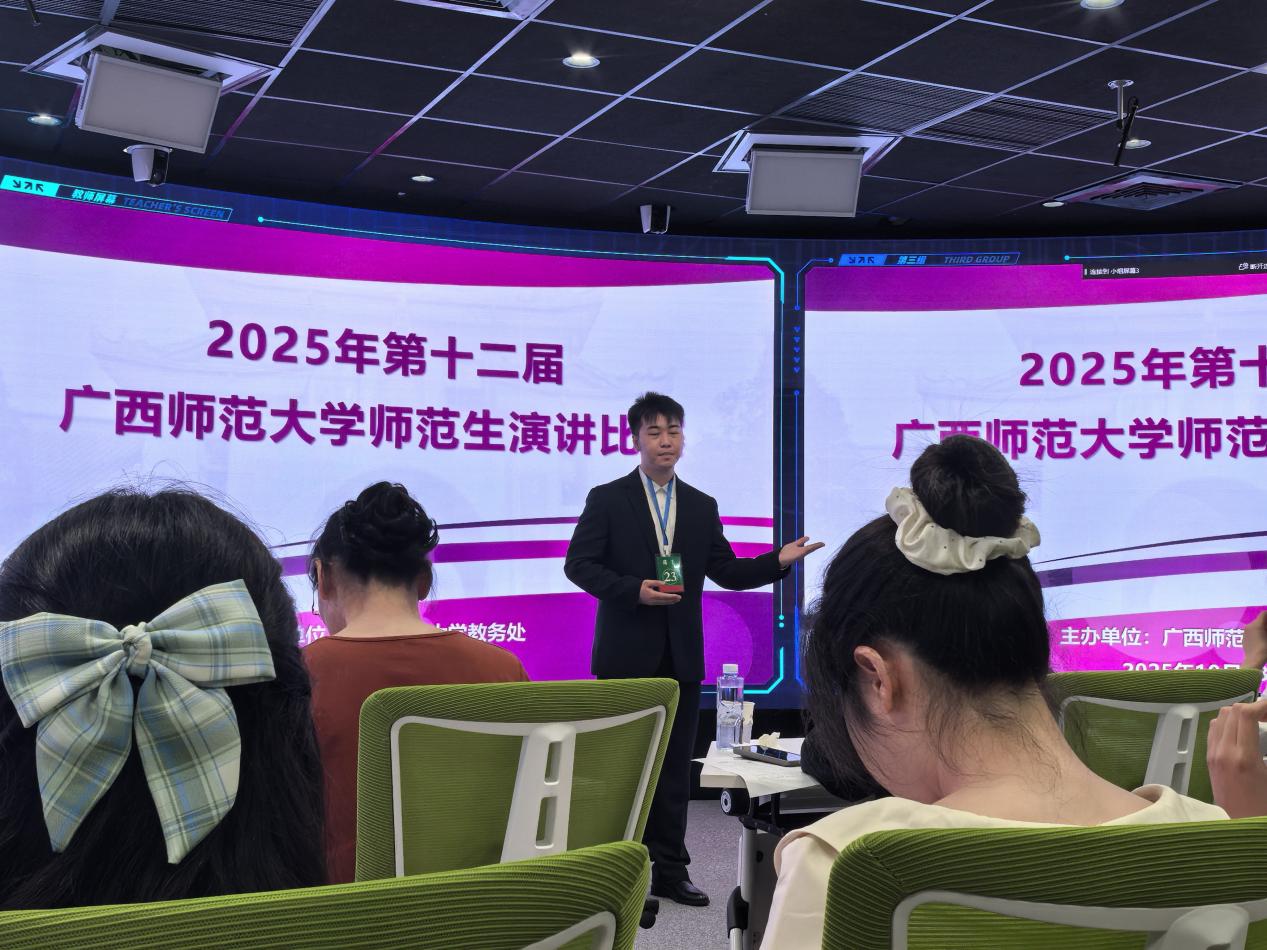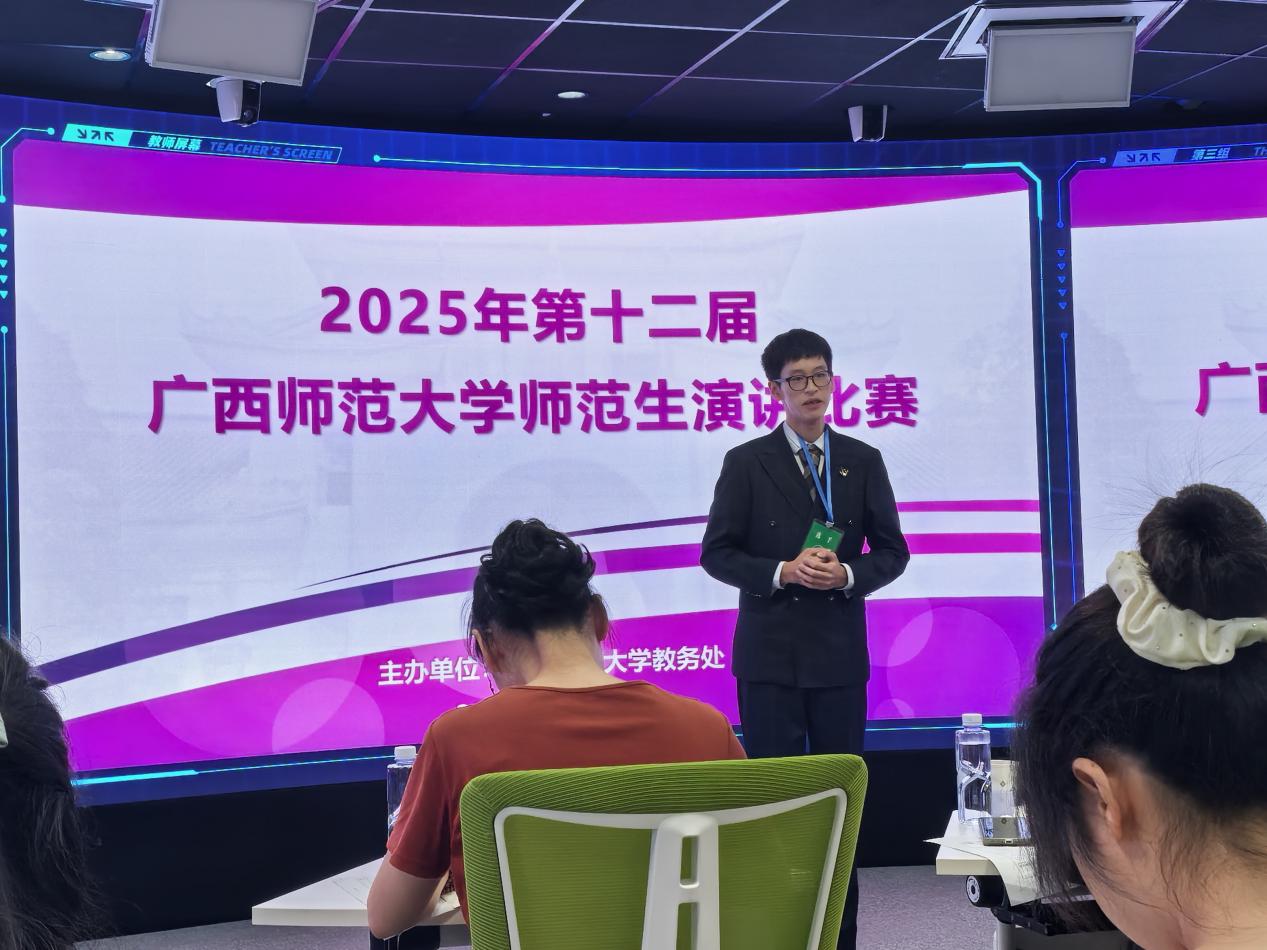学院新闻 为积极响应新时代教师队伍建设号召,充分展现教育工作者以立德树人为根本的职业风采,10月18日,广西师范大学开展了2025年第十二届师范生演讲比赛。本次比赛我院共有4位选手入围,经过激烈的角逐,胜游体育(SYsports)官方网站入口与技术学院陆子雄和谢昕燏同学荣获二等奖,伍楚钰同学荣获三等奖。