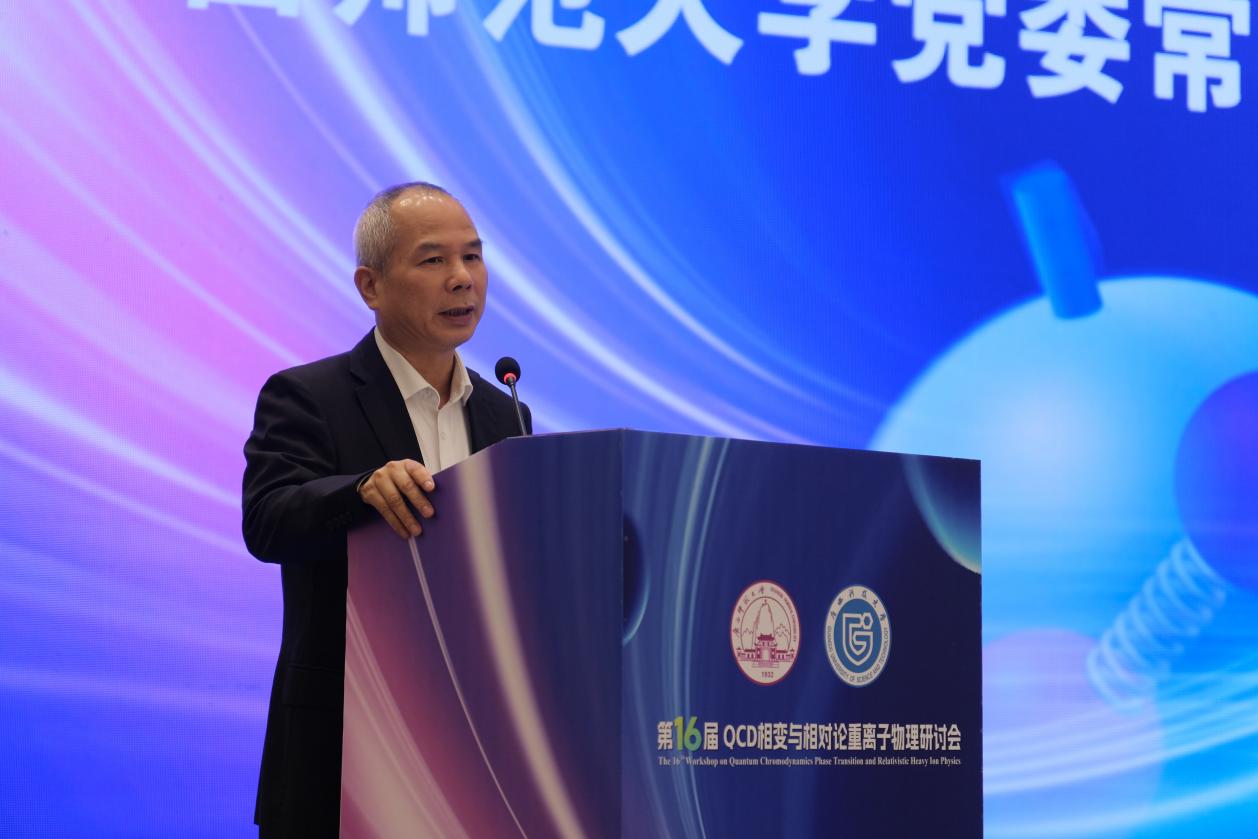开幕式上,广西师范大学党委常委、副校长李先贤教授以及参会嘉宾代表、华南师范大学原校长王恩科教授分别致辞。他们对大会的召开表示热烈祝贺,并对我国高能核物理研究的发展现状给出了高度评价。