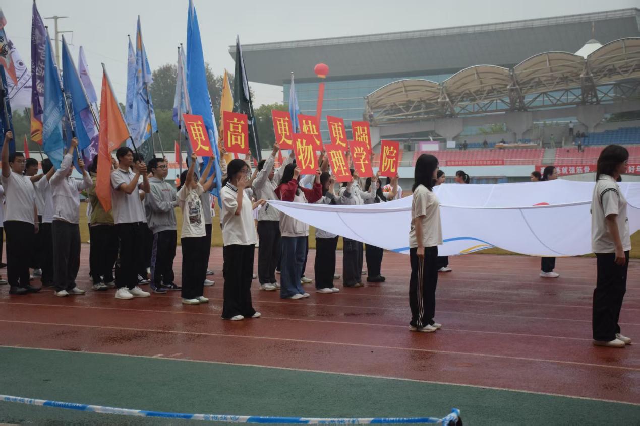 赛场内外,处处可见学院师生的风采。"物理学院,高光无限;力热光电,威震四方"唱响四方,青春舞方阵精神饱满,跳出青春色彩;赛事期间,运动员全力以赴挑战自我,生动诠释了“更快、更高、更强——更团结”的奥林匹克格言;赛场之外,工作人员有序组织,保障后勤。观众热情助威,点燃场上氛围。 全院师生共同展现出强大的凝聚力和团结奋进的精神风貌。