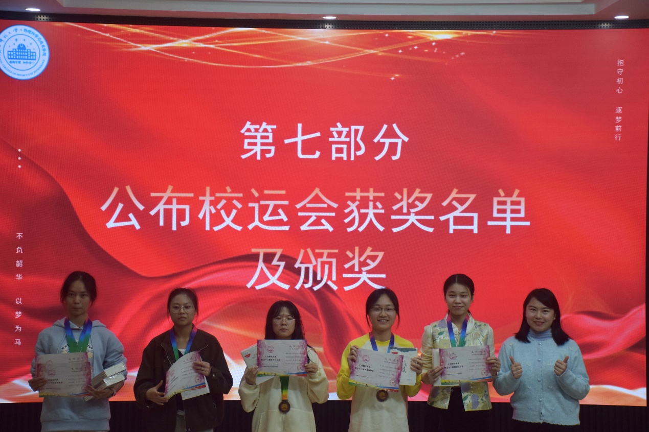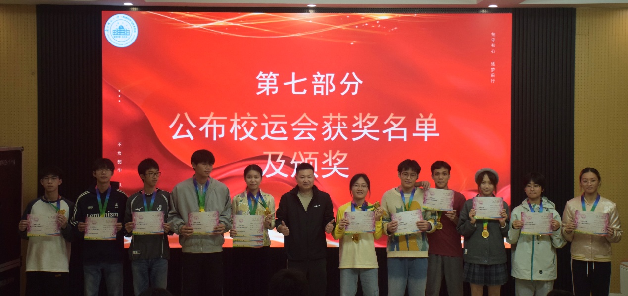 表彰环节中,学生会各部门代表领取优秀工作人员奖状,获奖运动员依次登台收获荣誉。随后,杨东鹏、曹庆、柳莲君老师先后发言,肯定了全院师生在赛事中展现的团结协作与拼搏精神,鼓励大家将这份热情延续到学业与学生工作中,以更饱满的状态奋进前行。