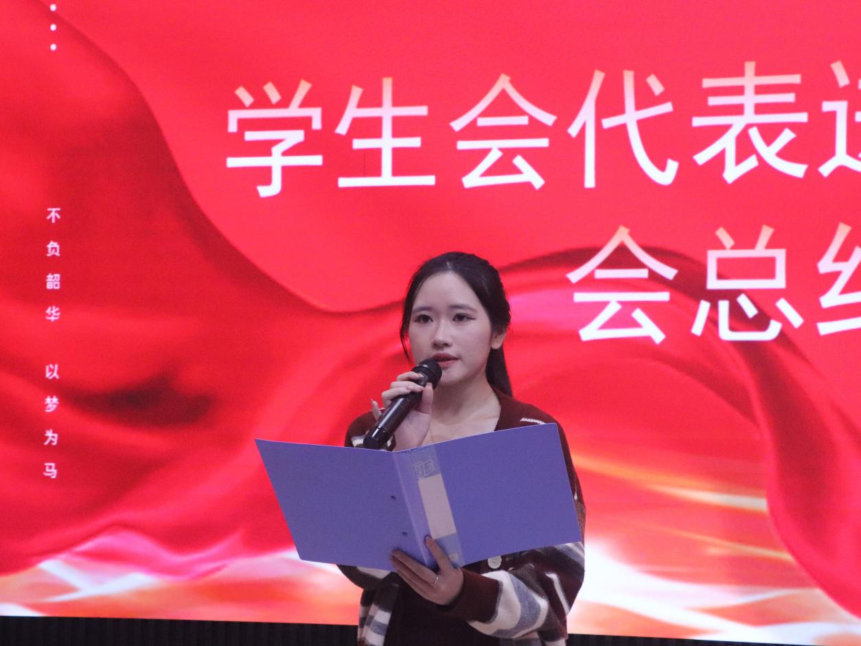 大会流程紧凑有序:纪检部首先通报出勤情况,随后介绍到场嘉宾;校运会精彩瞬间展示环节,奖杯与奖牌的陈列让现场重温了赛事的热血氛围;学生会代表总结了赛事组织的协作成果,运动员代表分享了赛场拼搏的感悟。