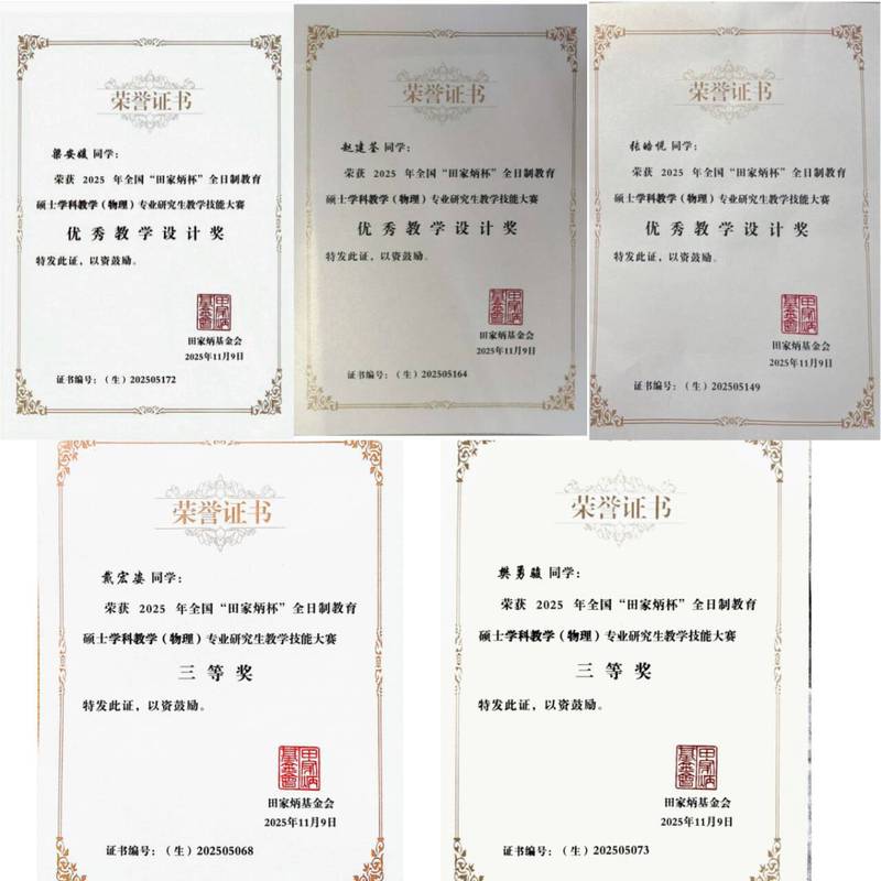 学院新闻2025年全国“田家炳杯”全日制教育硕士专业学位研究生学科教学(物理)专业教学技能大赛决赛于11月6日至9日在华南师范大学举行,我院5位选手全部进入决赛,属我校“田家炳杯”全日制教育硕士研究生教学技能比赛历史首次。经过激烈角逐,学院共斩获三等奖2项、优秀教学设计奖3项。