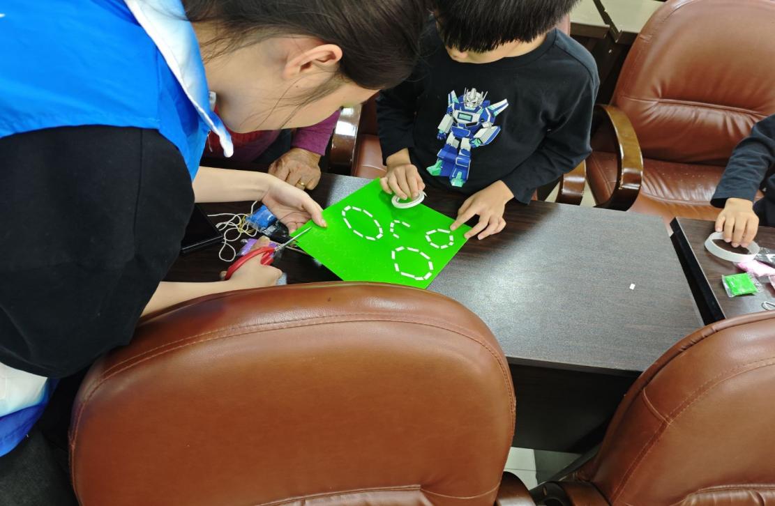 在动手实践环节,孩子们与家长协作制作悠悠球,将理论知识转化为动手成果,在亲身动手实践过程中更深刻地体会到了能量转化原理在制作过程中的应用。