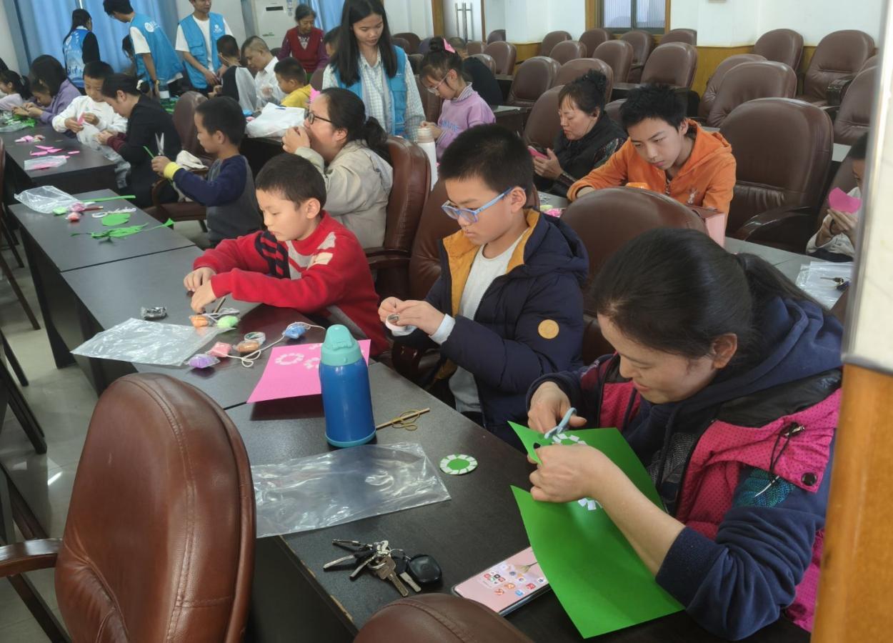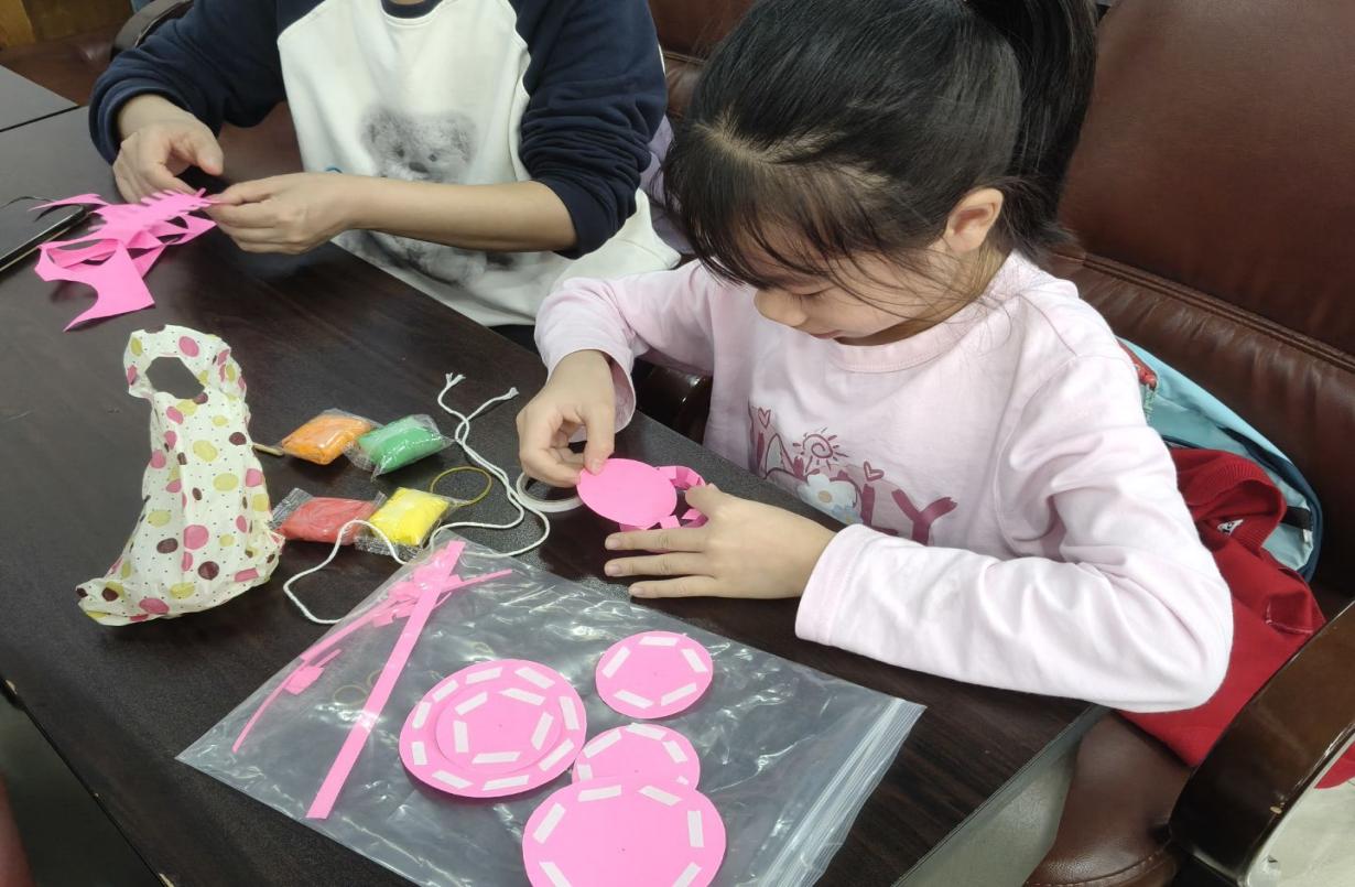 小朋友和家长其乐融融进行手工制作