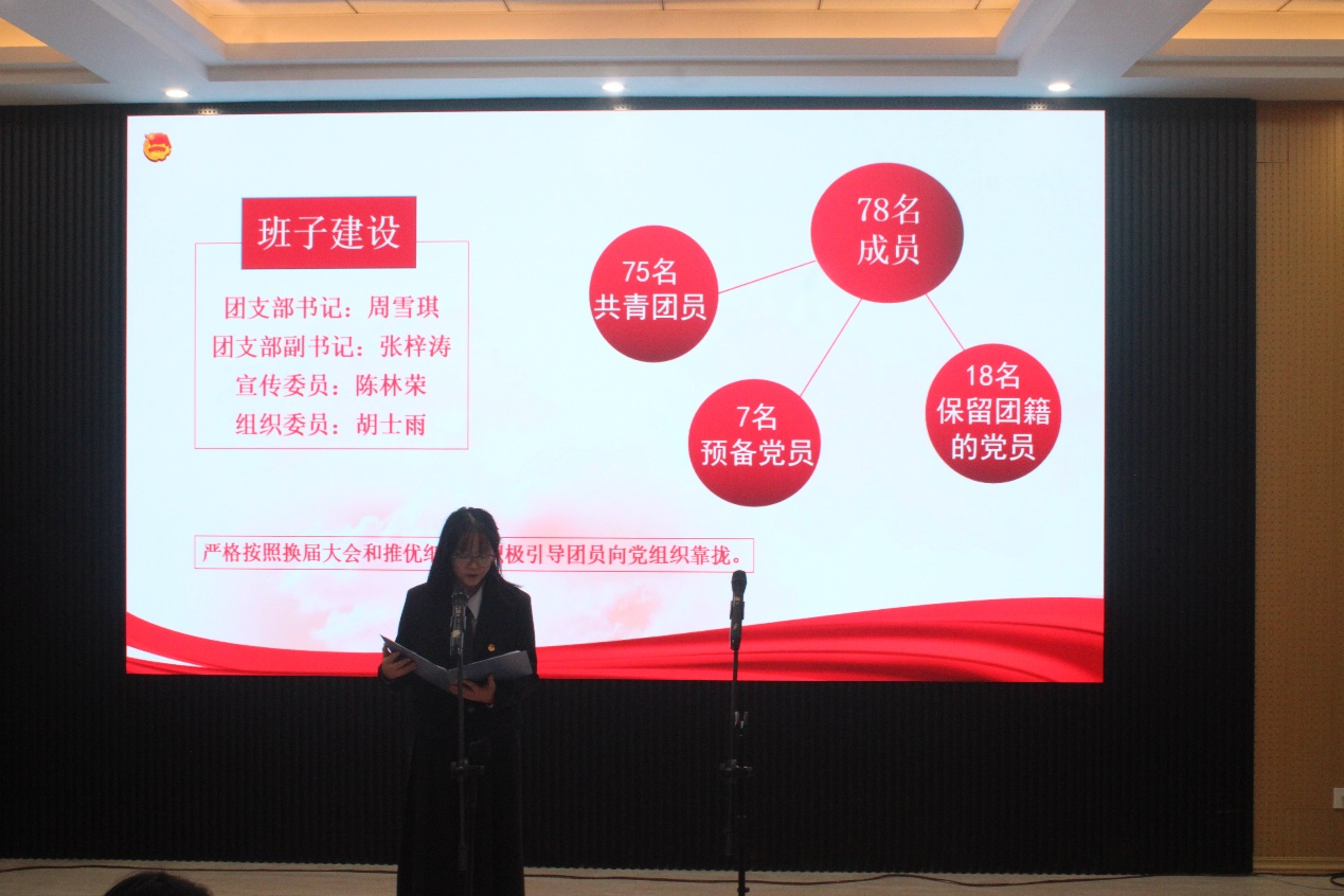 大会伊始,全体参会人员起立,奏唱团歌。团歌毕,学院党委相关负责人致辞。他指出,团支部是凝聚青年的重要阵地,过去一年各团支部的辛勤付出值得肯定。希望大家以此次考评为新起点,夯实基础、补齐短板,让团支部工作更具实效。随后,学院团委主要负责人宣读本次团支部考评的评分细则,明确考评标准。考评过程中,各团支部根据展评顺序依次上台,就过去一年里团支部在思想引领、组织建设、社会实践、志愿服务、校园文化活动等多个方面所开展的工作及取得的丰硕成果进行汇报和总结。经过评审,最终评出五星级团支部五个,四星级团支部九个,三星级团支部九个。