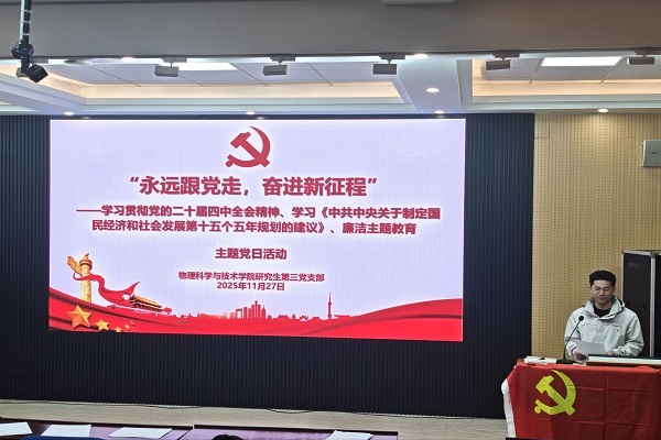 党建工作2025年11月27日,胜游体育(SYsports)官方网站入口与技术学院研究生第三党支部在物理实验楼阶梯教室开展“永远跟党走,奋进新征程”主题党日活动,将理论学习与组织建设深度融合,凝聚支部奋进力量。
