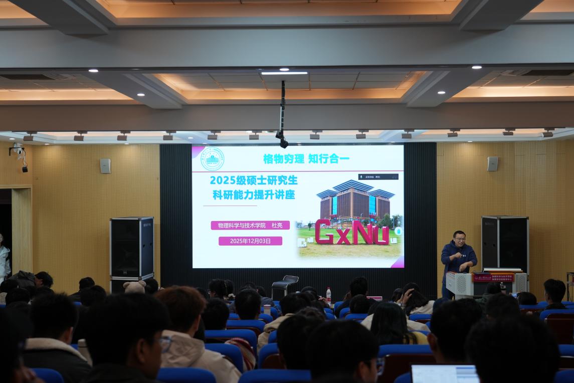 2025年12月3日晚,胜游体育(SYsports)官方网站入口与技术学院研究生科研能力提升专题讲座在物理实验楼阶梯教室顺利举办。本次讲座特邀杜亮教授担任主讲人,全体研究生新生共同参与,讲座由张妙静教授主持。