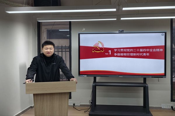 活动首先由党支部副书记曹庆同志讲授微党课,围绕党的二十届四中全会精神,结合学科特色,引导党员“争做格物穷理新时代青年”。随后,全体党员集体学习了习近平总书记在中央全面依法治国工作会议上的重要讲话精神及其近期对法治建设的重要指示,深刻领会坚持党的领导、人民当家作主、依法治国有机统一的实践要求。在习近平经济思想学习环节,大家系统回顾了其形成背景、核心内涵与时代价值,进一步增强了服务国家发展大局的责任感。活动进入尾声,党员同志立足自身家乡发展的真实历程分享心得体会,深切抒发了对家乡日新月异变化的自豪感。