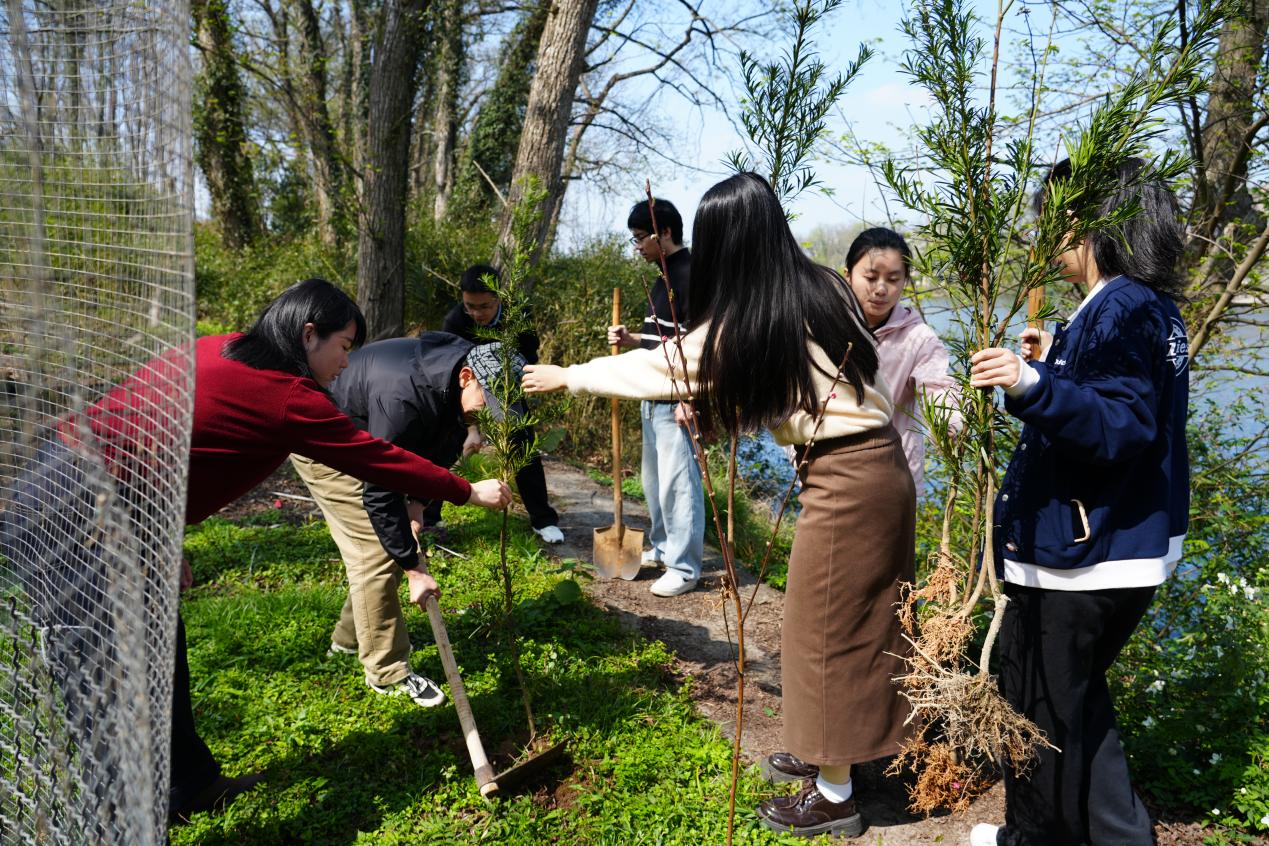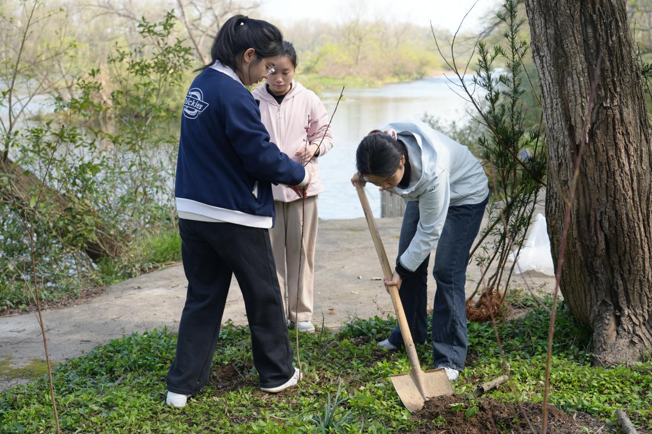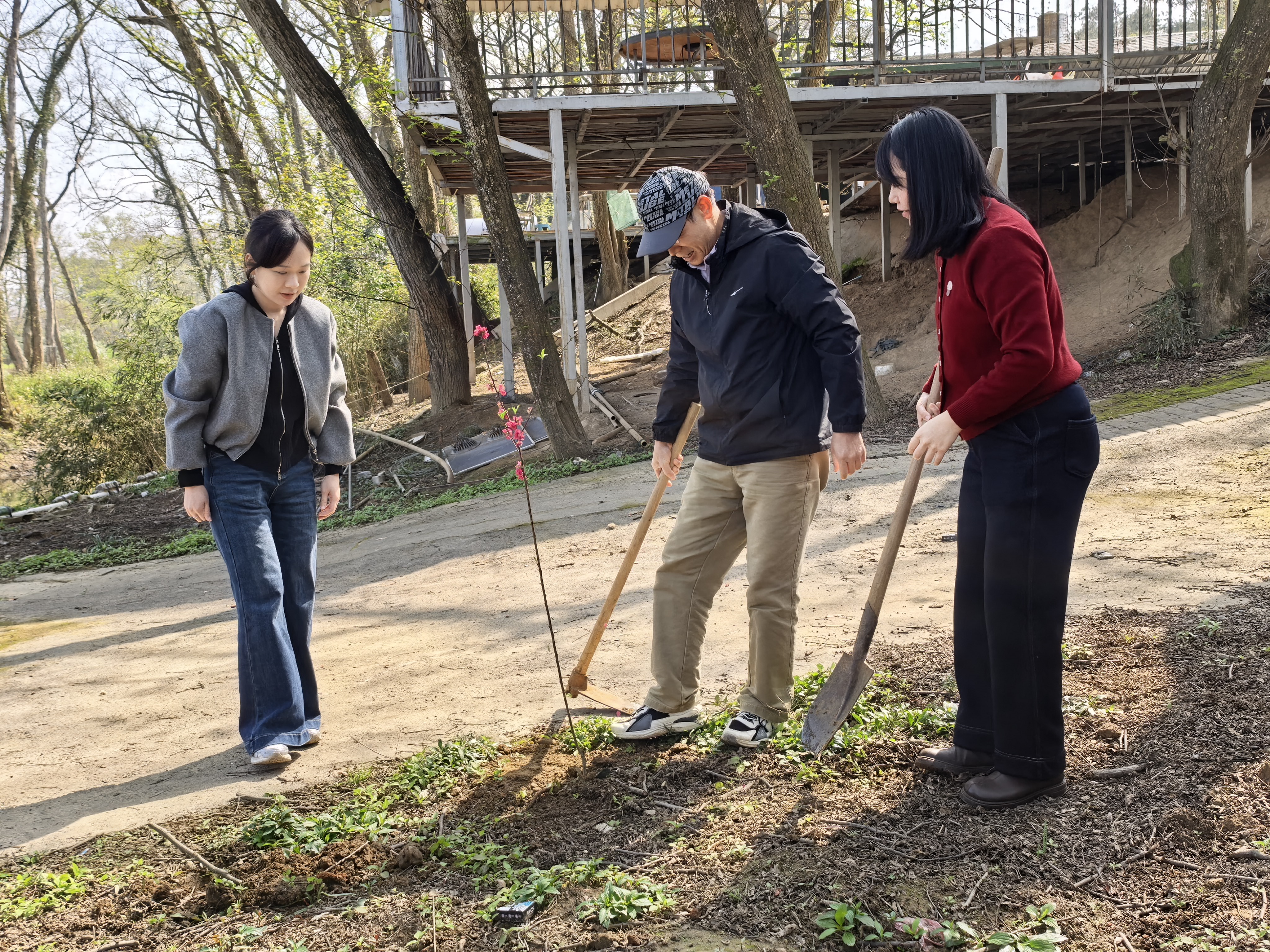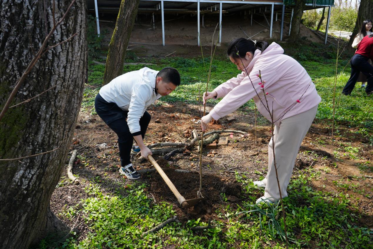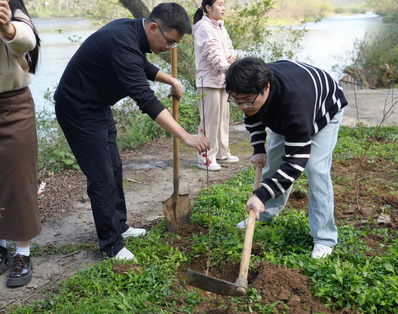 活动现场,在学院党委书记的带领下,师生们热情高涨、分工协作,纷纷拿起铁锹、锄头、水桶等工具投入到植树劳动中。大家挥锹铲土、扶苗填坑、提水浇灌,经过一番辛勤劳作,一株株新栽种的树苗迎风挺立,为初春的大地增添了勃勃生机。