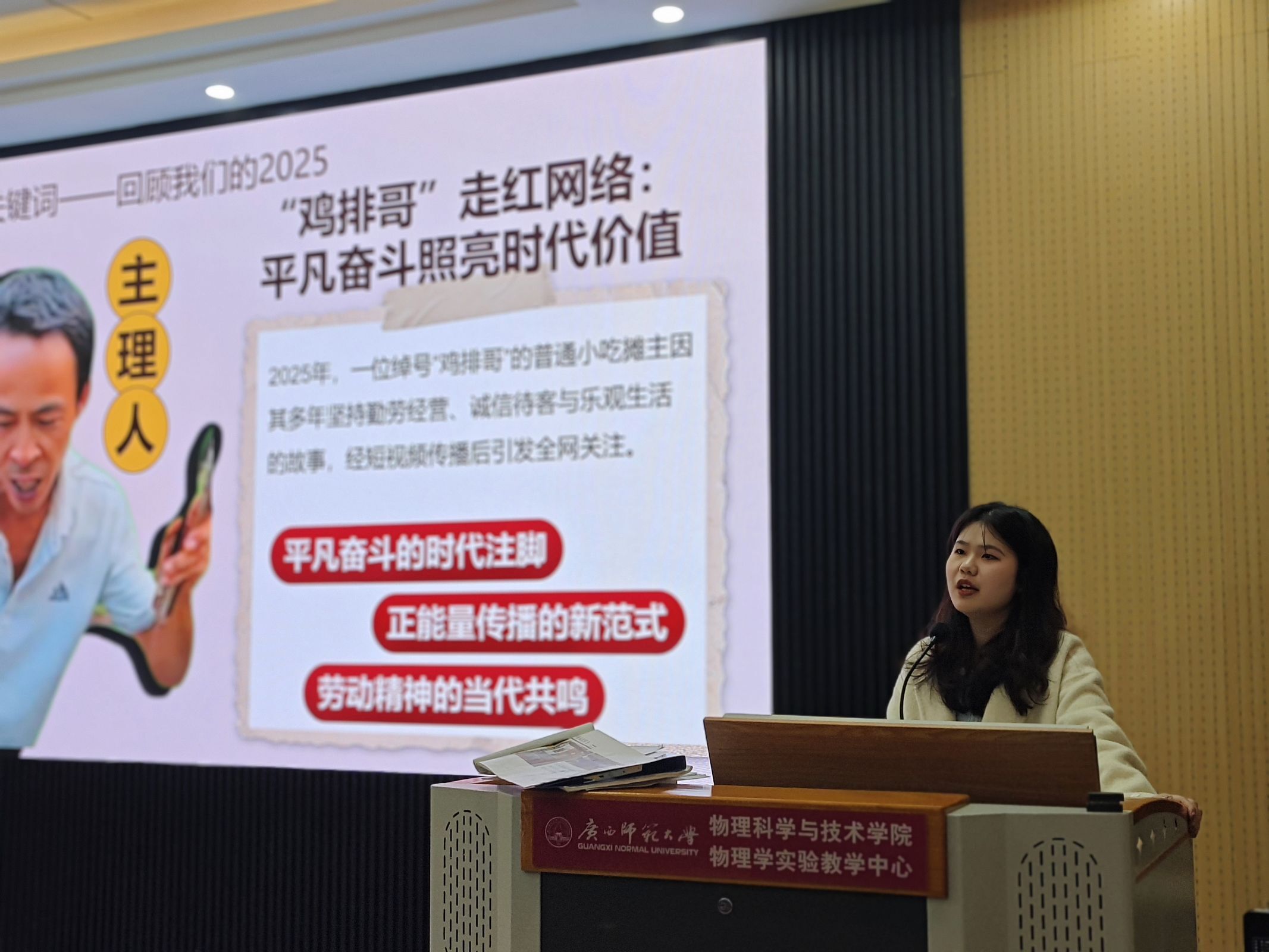 会议首先带领全体研究生回顾了过去一年国家各领域发生的大事。从DeepSeek人工智能大模型的横空出世,到电影《哪吒2》的现象级爆火;从9月3日纪念中国人民抗日战争暨世界反法西斯战争胜利80周年大会的庄严展示,到第十五届全国运动会的成功举办——这一系列重大事件,彰显了国家在科技创新、文化自信、历史传承与体育精神方面的全面进步。会议指出,研究生不仅是这些大事的见证者,更应该是未来大事的创造者。会议展望,同学们应从这些事件中汲取积极奋进的力量,把个人的学术追求融入国家“十五五”规划及国家发展的澎湃浪潮之中,在科研道路上勇于探索、敢于突破。