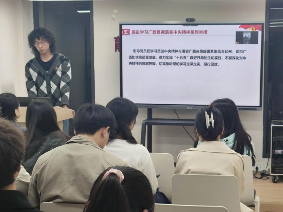 活动伊始,支部党员集中学习全国两会核心内容,重点解读政府工作报告中关于教育、科技、人才培养等重点部署,结合学院专业特色,强调青年学子在推动科技创新中的责任使命。随后,支部对习近平总书记近期重要讲话、重要文章和重要指示精神进行了逐一学习,深入领会习近平总书记对青年一代的殷切嘱托,围绕“如何将两会精神融入专业学习和日常实践”展开热烈讨论。