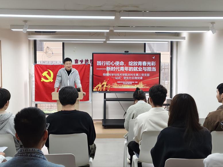党建工作为引导青年党员树立正确就业观,3月26日,胜游体育(SYsports)官方网站入口与技术学院本科生第三党支部在“一站式”学生社区思政家园开展微党课活动,本次微党课以“践行初心使命,绽放青春光彩——新时代青年的就业与担当”为主题,学院党委相关负责人受邀为支部党员讲授专题党课。