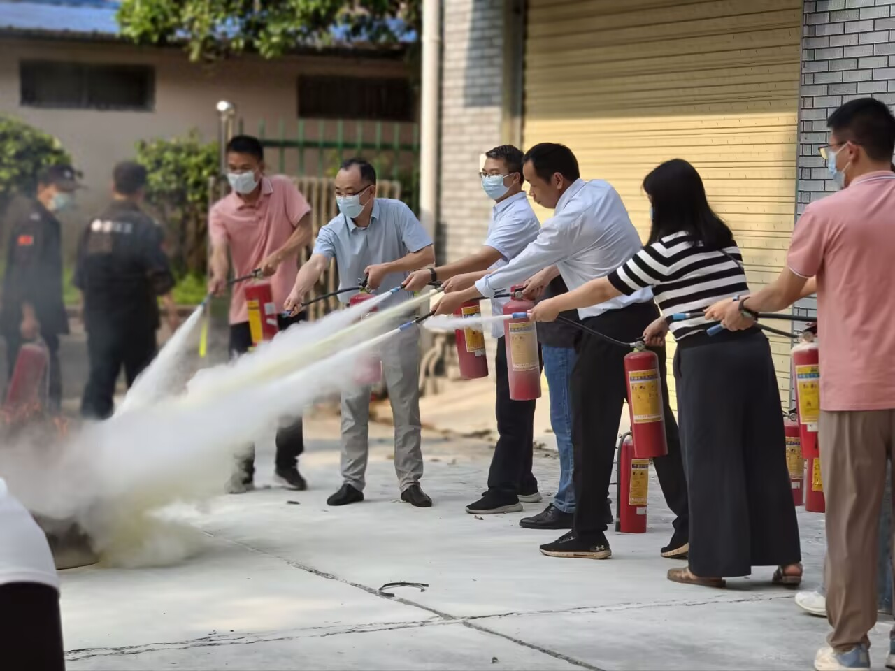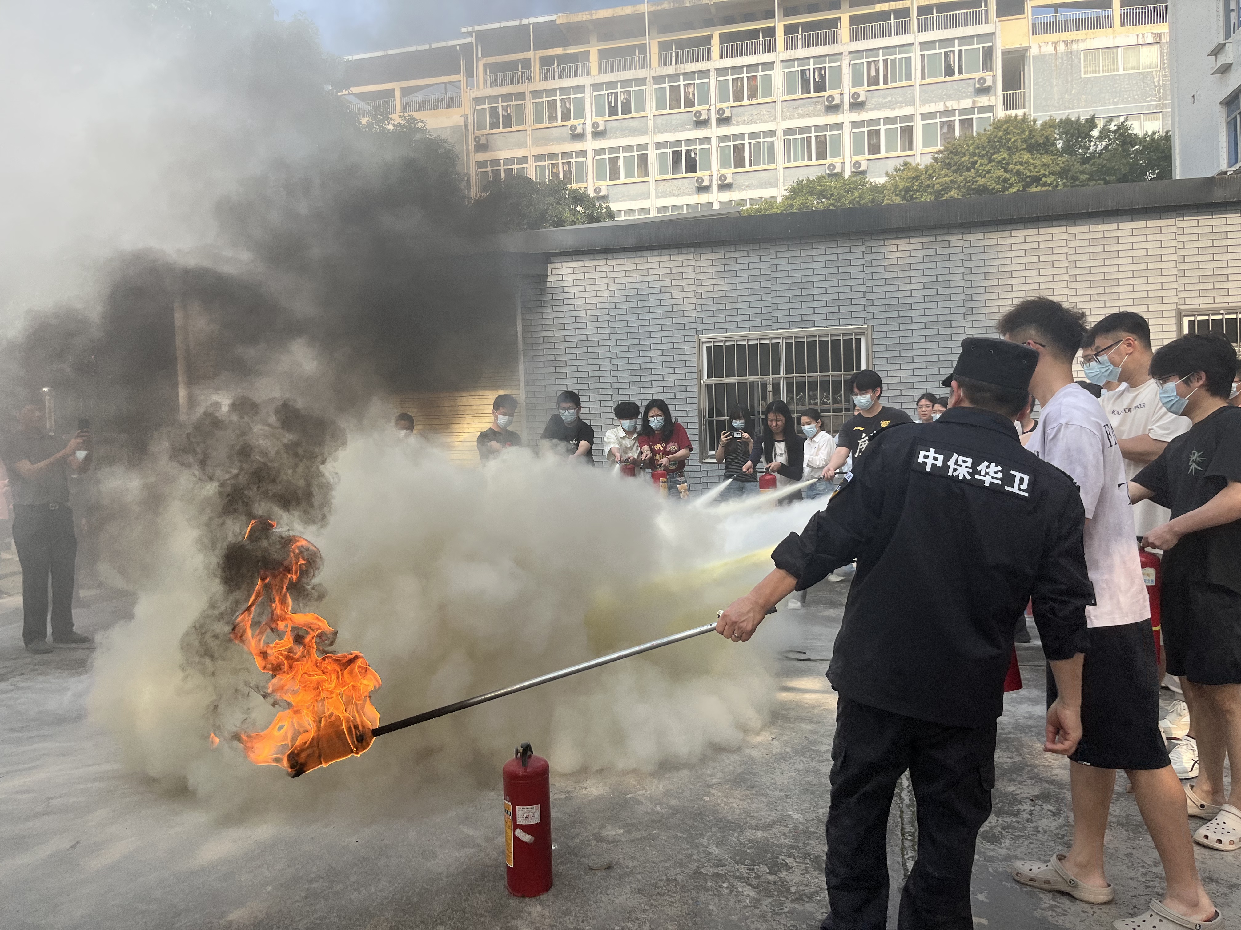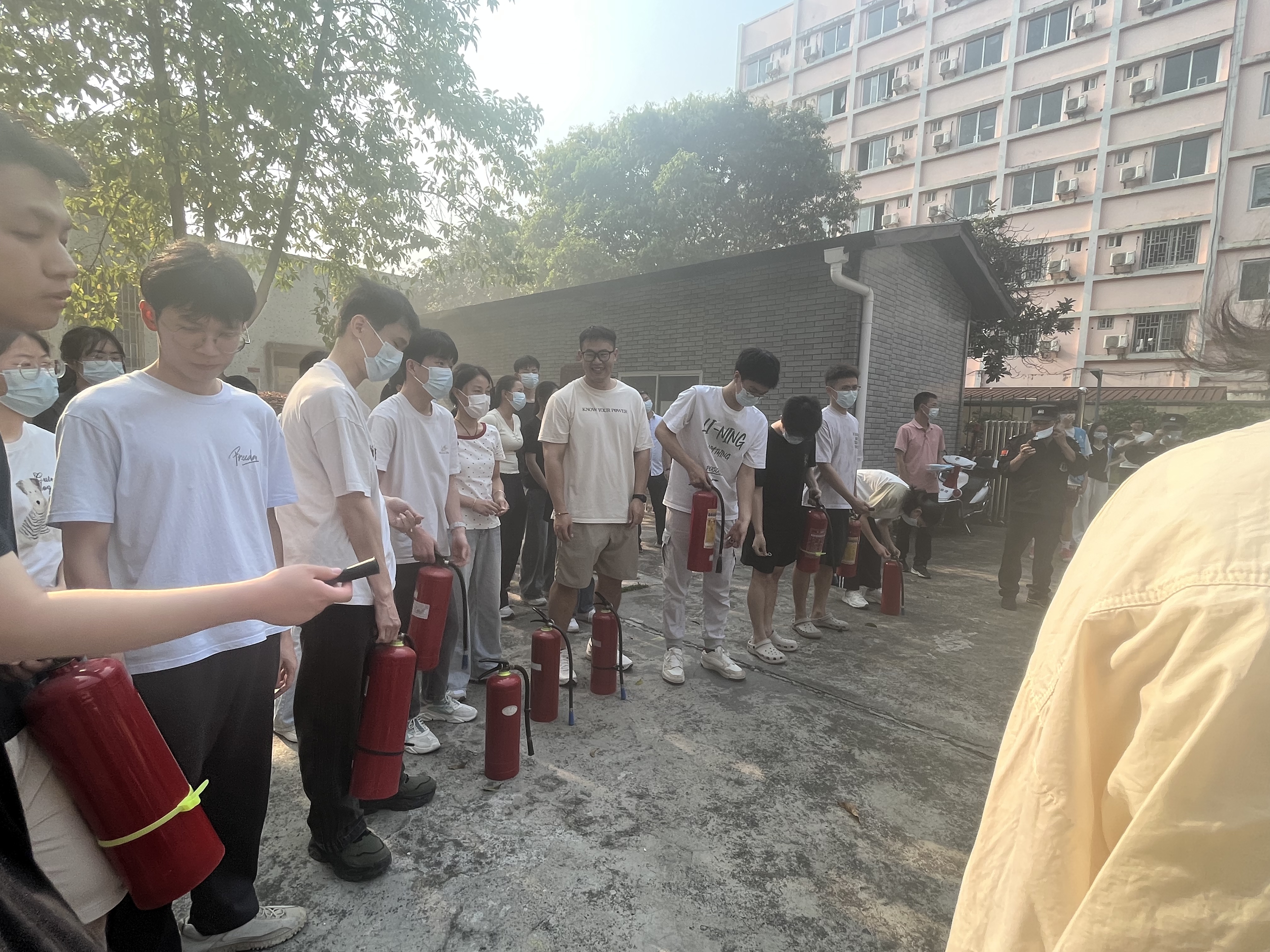师生学习灭火器操作流程