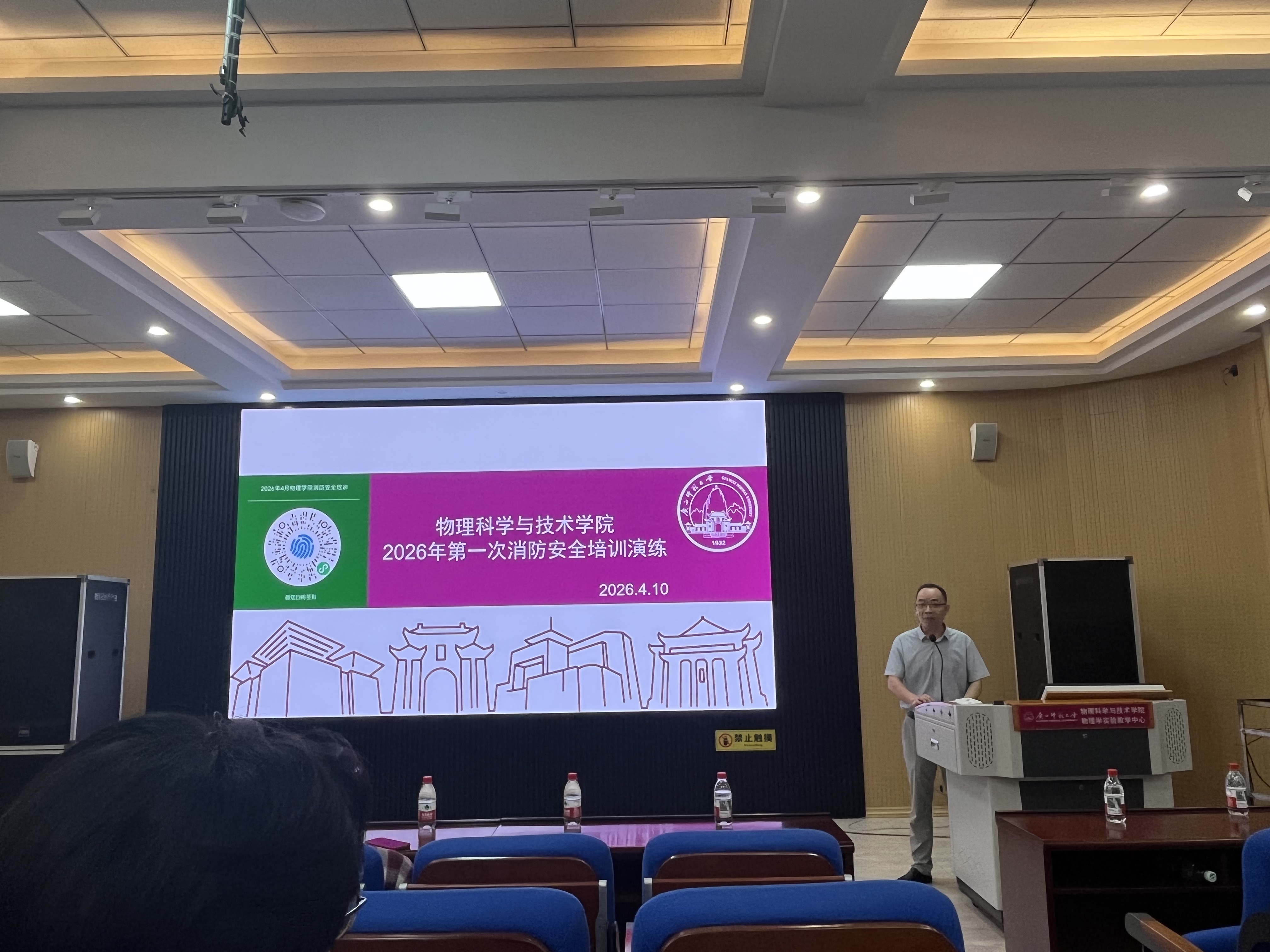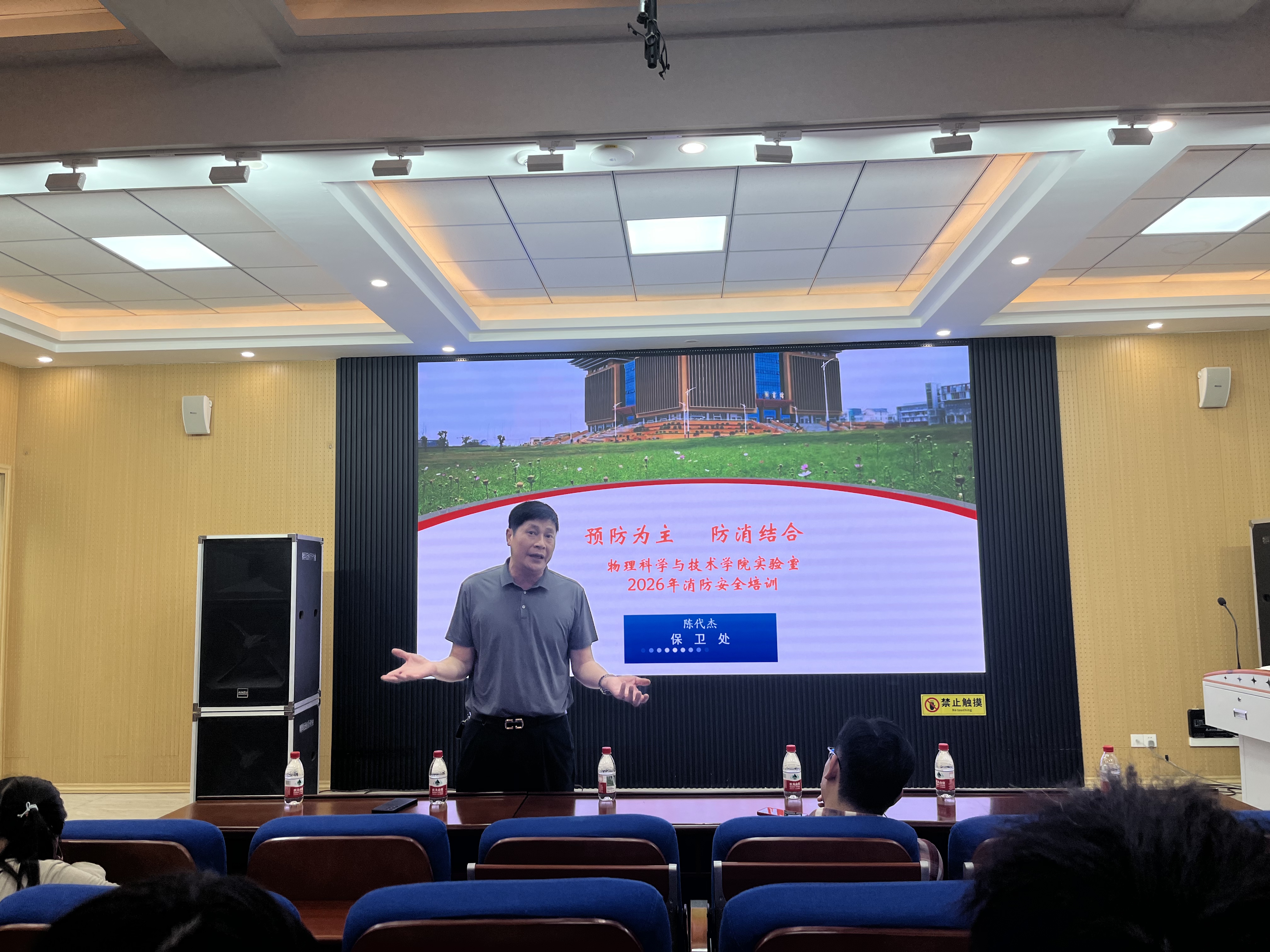 培训过程中,保卫处陈代杰老师围绕火灾成因、初期火灾扑救、火场逃生技能、消防设施使用及应急疏散流程开展专题讲座;实验室专业管理员余贵波老师结合学院特点,重点讲解危化物品使用、实验室突发火情应急处置要点,内容贴合教学科研实际,针对性与实用性强。