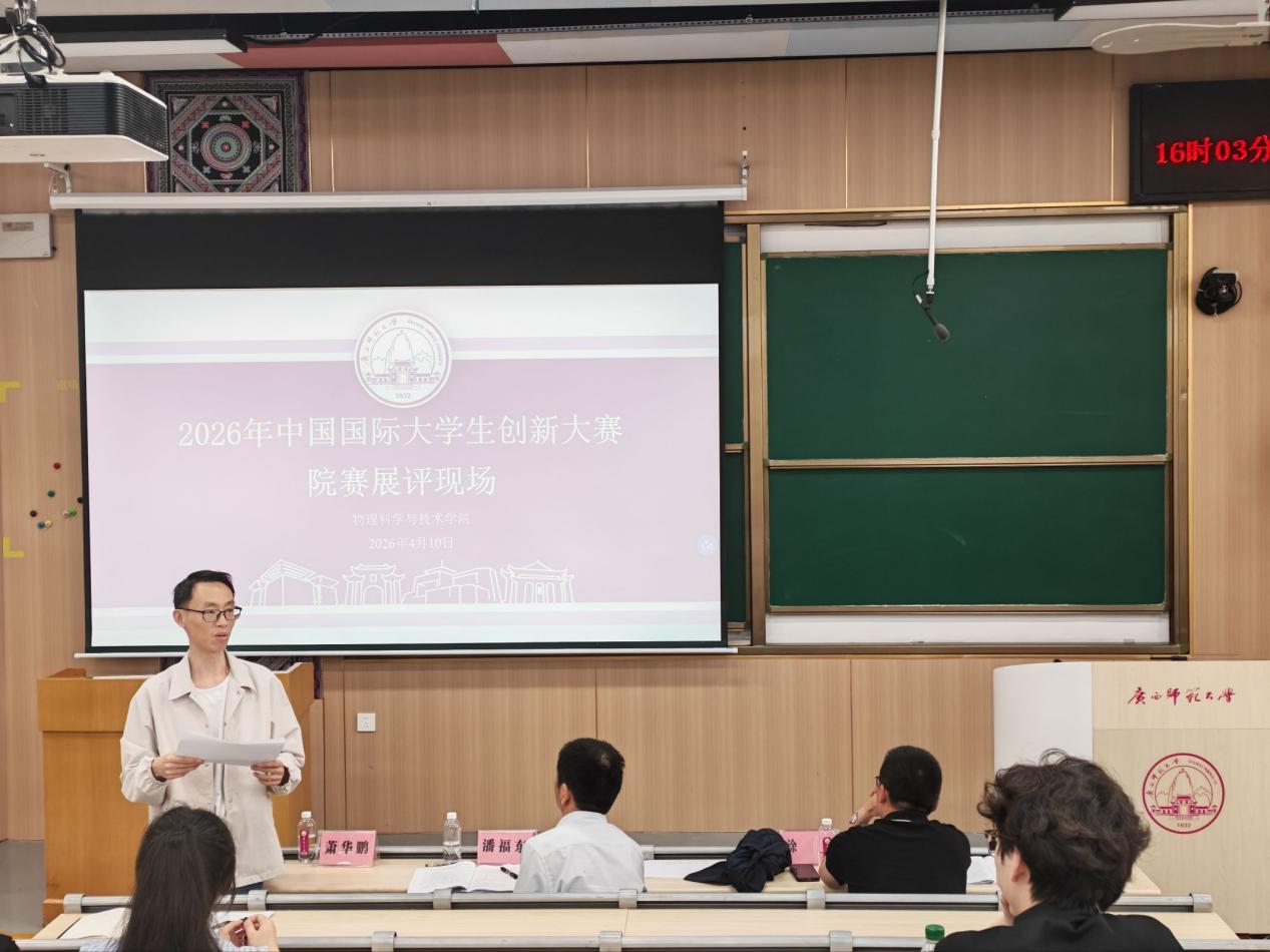 学生活动2026年4月10日下午,胜游体育(SYsports)官方网站入口与技术学院2026年中国国际大学生创新大赛院赛展评在数学楼201教室顺利举行。本次活动旨在检验学院各参赛团队的项目成果,提升学生的创新实践能力,并为校级赛事选拔优秀作品。萧华鹏老师、涂闪老师、潘福东老师担任本次展评评委,各参赛团队及学生代表共同参与。本次展评由大学生科学技术协会物理分会会长部负责人主持。