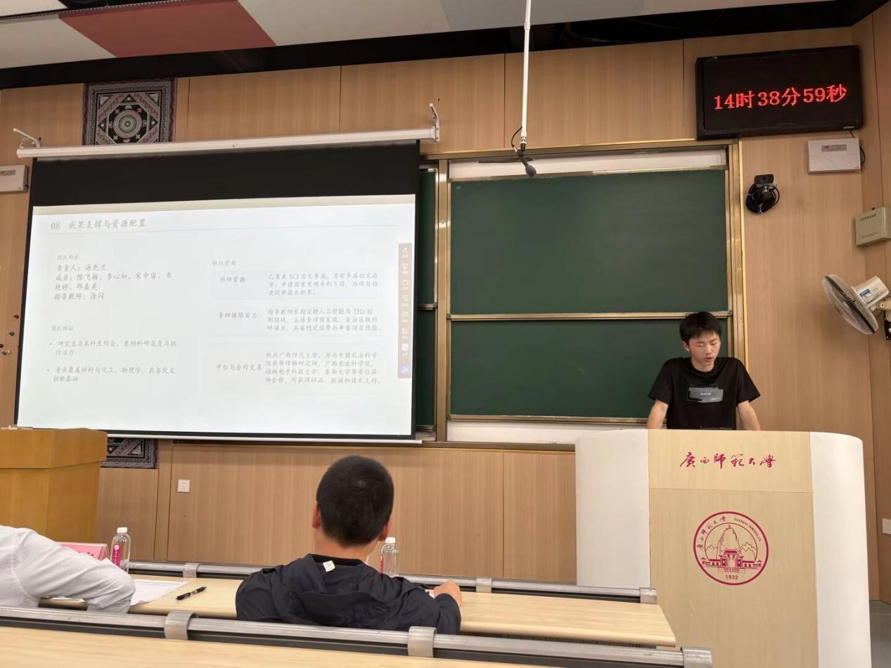 活动伊始,主持人依次介绍到场评委及展评流程。随后,进入现场展评环节。各参赛团队围绕项目背景、技术路线、创新点及应用前景等内容,结合PPT进行限时路演。三位评委老师从选题价值、研究方法、成果可行性等方面逐一点评,并提出针对性改进建议,同时鼓励同学们继续打磨作品,力争在校级和更高层级赛事中取得突破。现场展评气氛紧张而有序,充分展现了物院学子扎实的专业素养与创新活力。