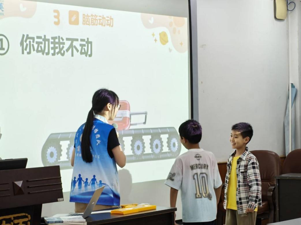 课堂上,团队成员从安检传送带、叠书实验等生活场景切入,生动引出摩擦力的科学概念,快速点燃小学生的探索热情。互动环节中,小学生现场模拟传送带与行李箱的受力场景,直观感受摩擦力的作用原理;通过测力计拉木块实验,清晰观察物体重量、接触面材质对摩擦力大小的影响,让抽象物理知识变得可视可感。